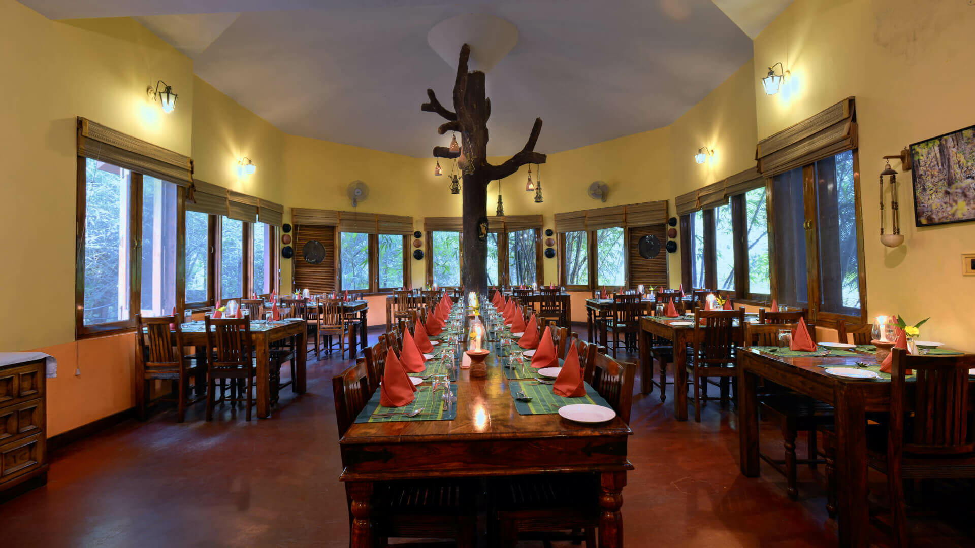 Das aus 24 Zimmern verschiedenen Kategorien bestehende sehr großzügig verteilte Vannraj Lodge nahe am Turia-Gate im Pench Nationalpark wurde erst 2014 fertig gestellt.