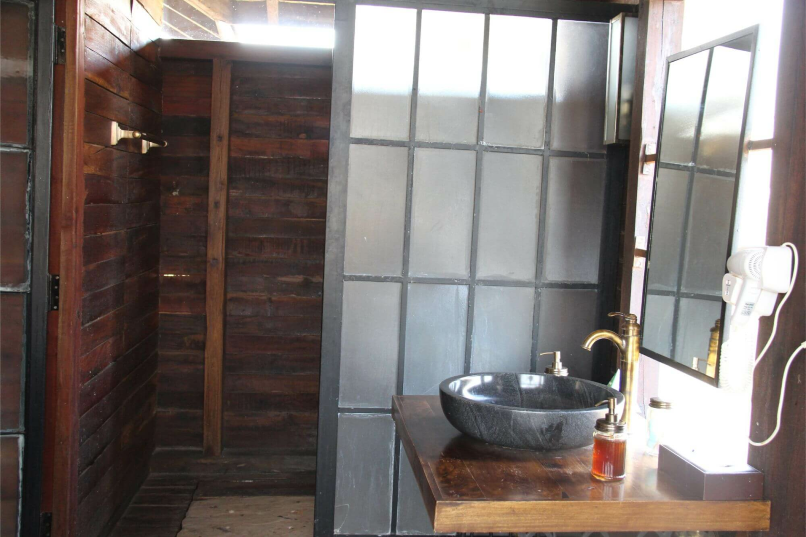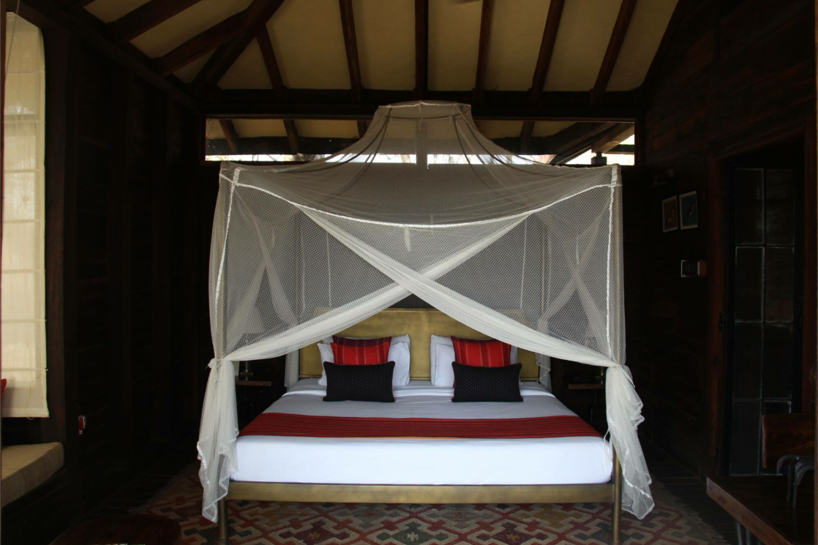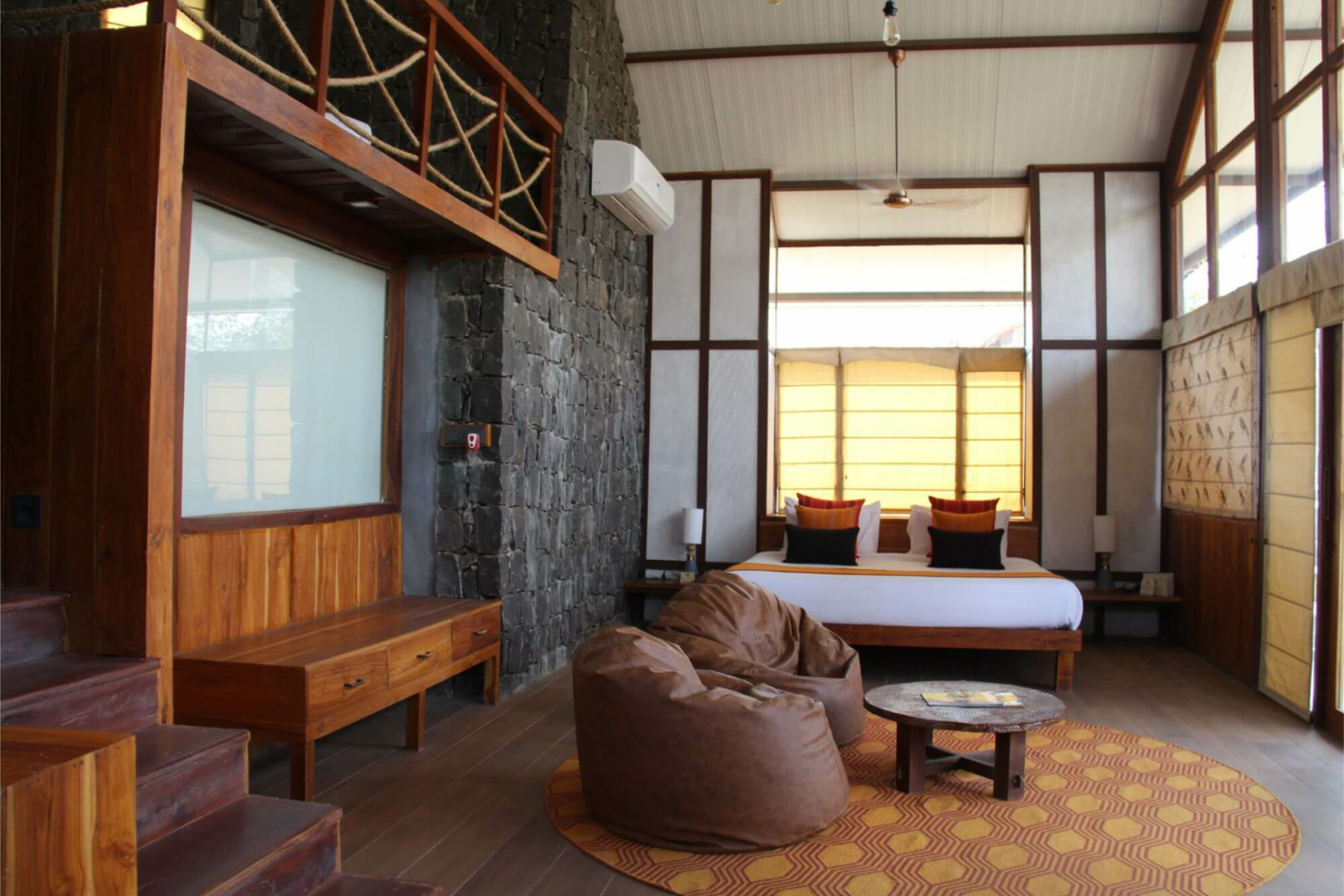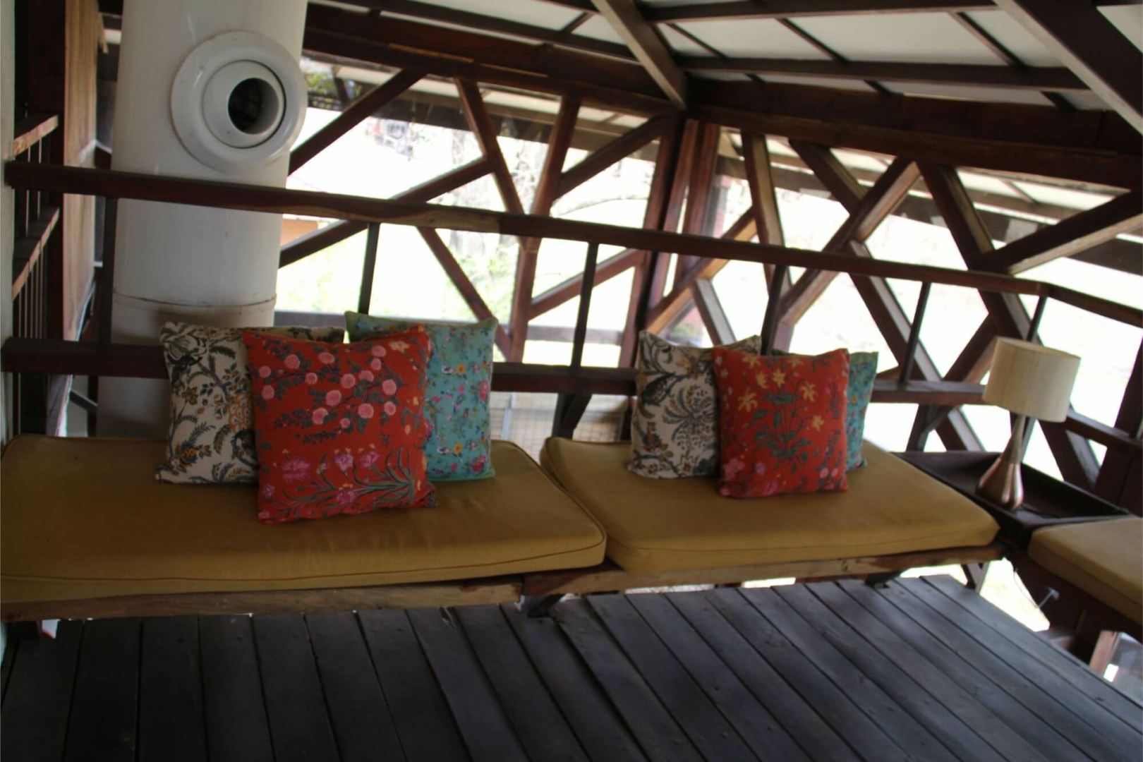 Auf der anderen Seite des Grabens befinden sich die etwas teureren, aber sehr rustikalen Treehouses. Man erreicht diese um einen Baumstamm auf etwa sieben bis acht Metern Höhe über dem Boden gebauten Zimmer über eine Holztreppe. Die Inneneinrichtung der Zimmer ist aufgrund des dunkelfarbigen Teakholzes etwas dunkel, aber natürlich wunderschön. Eine Terrasse und ein großes Badezimmer ergänzen das Bild. Für abenteuergesinnten, naturverbundene Menschen und Gäste mit Kindern ist eine Übernachtung ein großes Highlight, wobei die Cottages ein besseres Preis- Leistungsverhältnis anbieten.