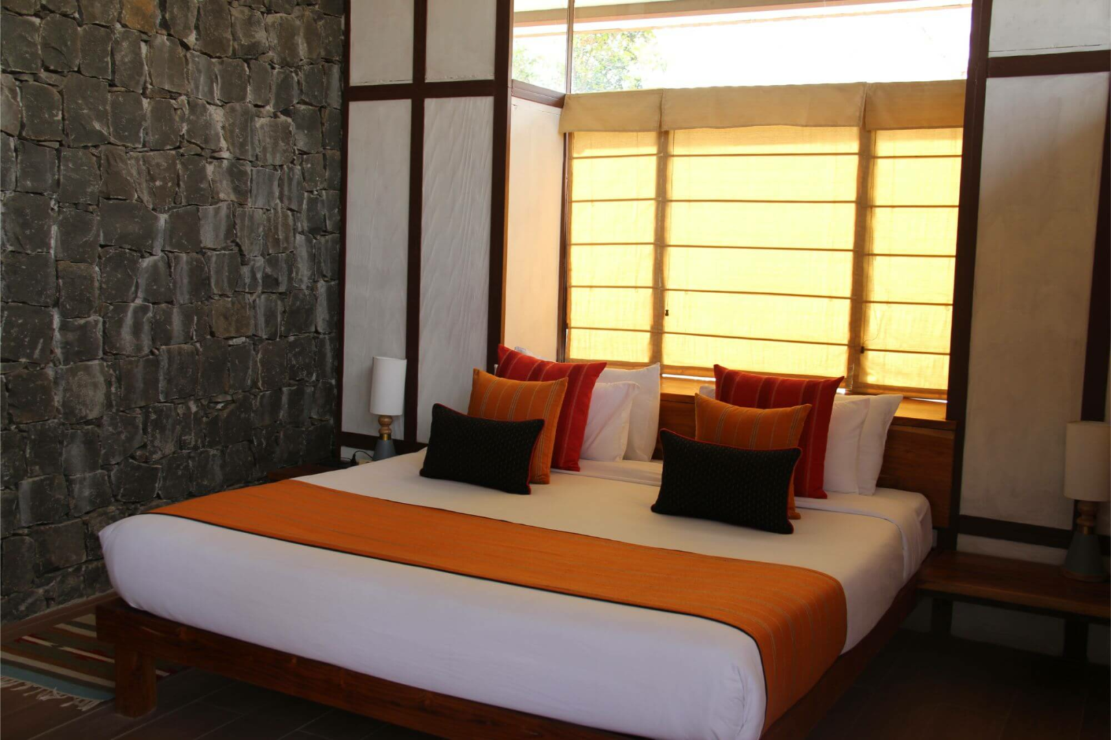 Das aus 24 Zimmern verschiedenen Kategorien bestehende sehr großzügig verteilte Vannraj Lodge nahe am Turia-Gate im Pench Nationalpark wurde erst 2014 fertig gestellt.