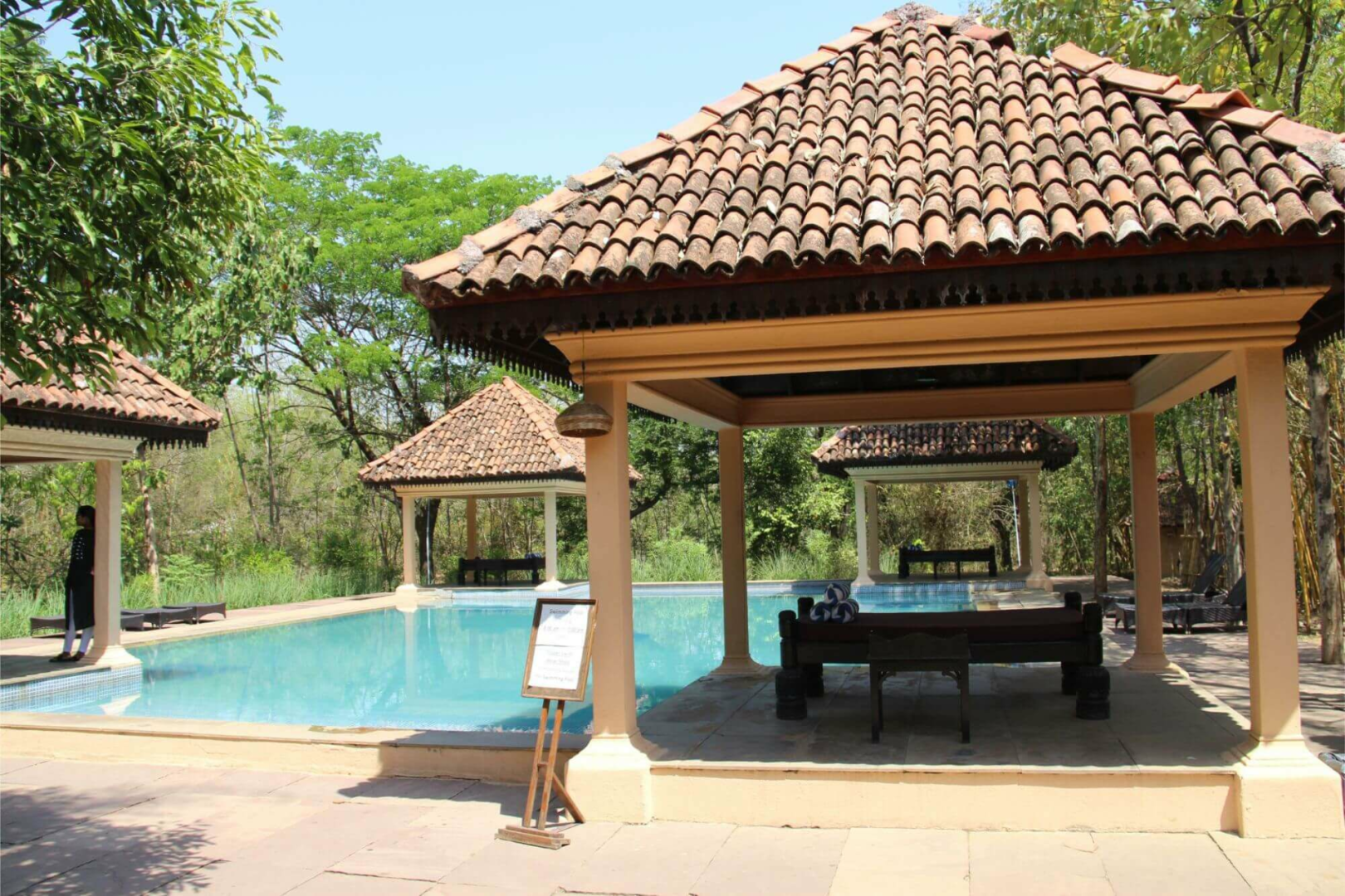Das aus 24 Zimmern verschiedenen Kategorien bestehende sehr großzügig verteilte Vannraj Lodge nahe am Turia-Gate im Pench Nationalpark wurde erst 2014 fertig gestellt.