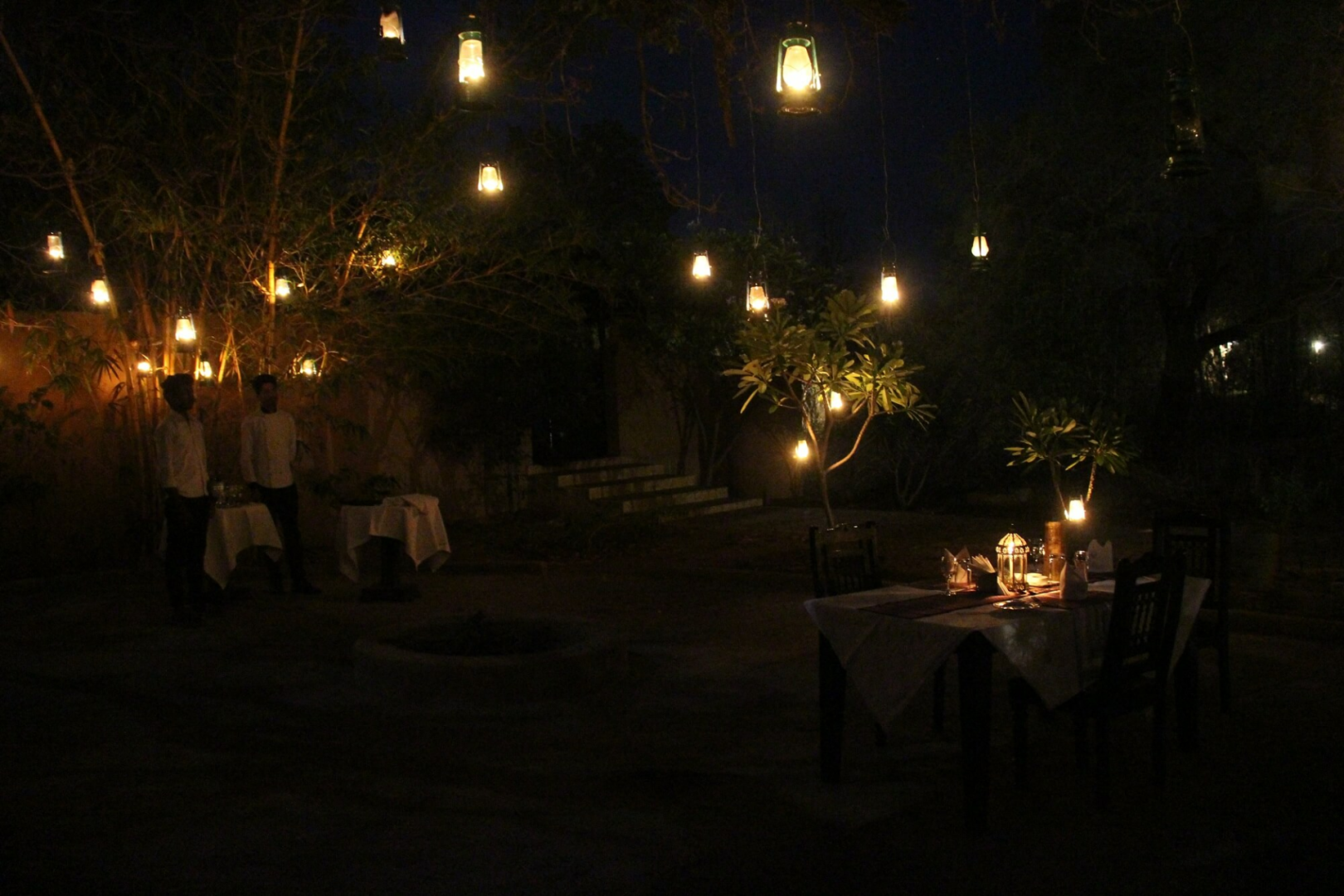 Wie in sonst so vielen anderen Dschungellodges in Indien hat der Speiseraum keinen großen Charme. Schöner hingegen ist der Loungebereich auf der linken Seite des Hauptgebäudes. Der Lodge fehlen bessere Sitzmöglichkeiten draußen. Auch einige Schönheitsfehler sind ein Hinweis dafür, dass man nicht an den richtigen Stellen investiert hat.