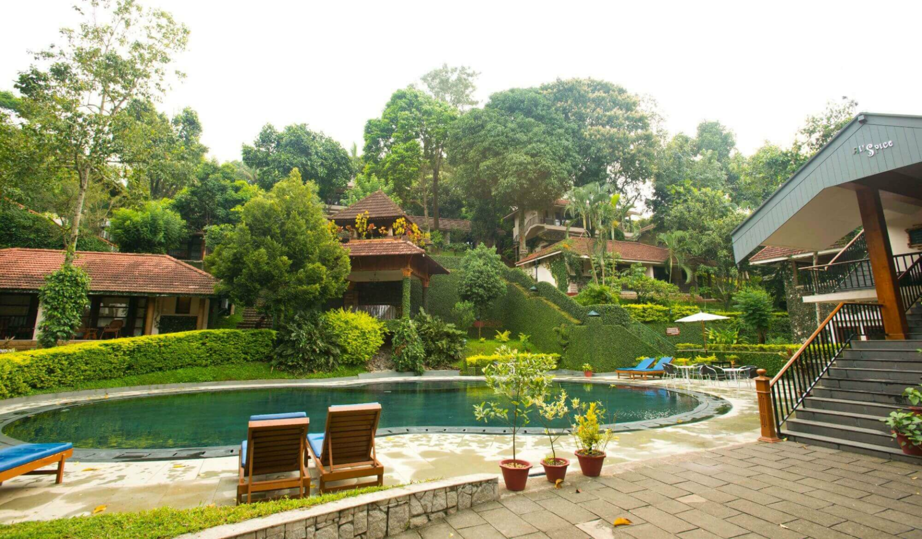 Das Cardamon County ist ein angenehmes Hotel im ländlichen Baustil in einer ruhigen, vom Wald umgebenen Lage außerhalb von Kumily. Die Anlage ist sehr üppig bepflanzt, zahlreiche Affen leben hier. Von der offenen Lobby blickt man auf den schönen Pool.