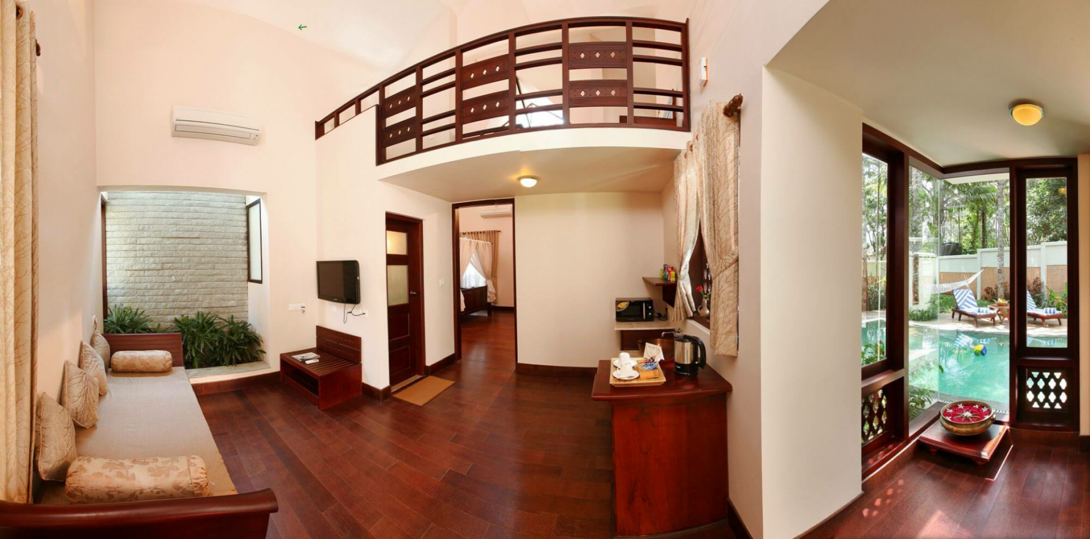 Der Innendekor ist raffiniert, der Empfang und der Service sehr aufmerksam, das Essen auf hohem Niveau. Es gibt auch einen schönen Pool und ein abendliches Unterhaltungsprogramm mit traditionellen Kerala-Tänzen. Die Suites mit privatem Pool sind der Hammer. Zu empfehlen!