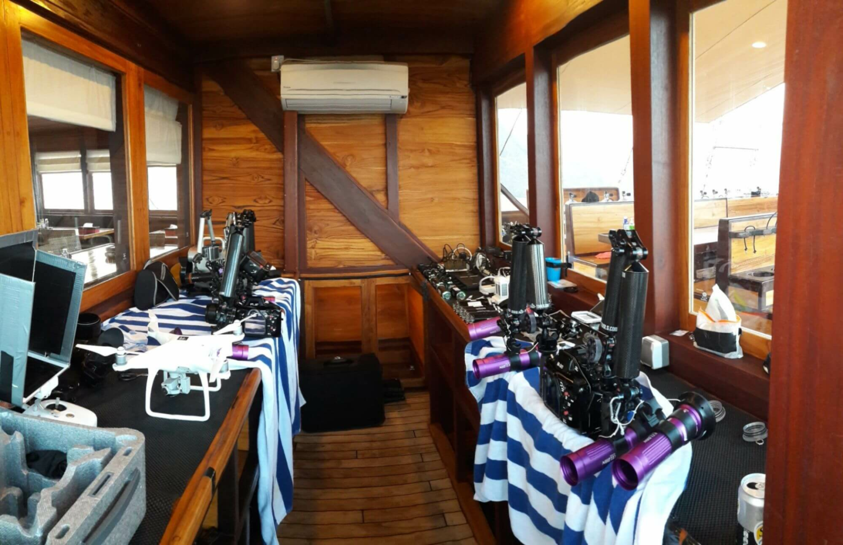 Das Essen ist exquisit und sehr abwechslungsreich und wird in dem eleganten Restaurantbereich serviert. Es gibt ein großzügiges, halboffenes Deck mit Sonnenliegen und vielen Sitzgelegenheiten (das Deck wird teilweise beschattet, wenn die Sonne scheint). Es wurde alles sehr nachgedacht (mit den Bedürfnissen der Taucher an erster Stelle). Man findet einen Kameraraum, Wäscheleinen und geräumige Vorbereitungsräume.