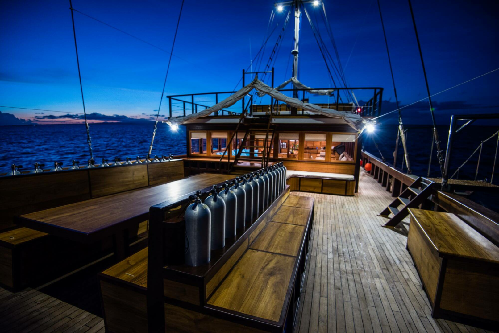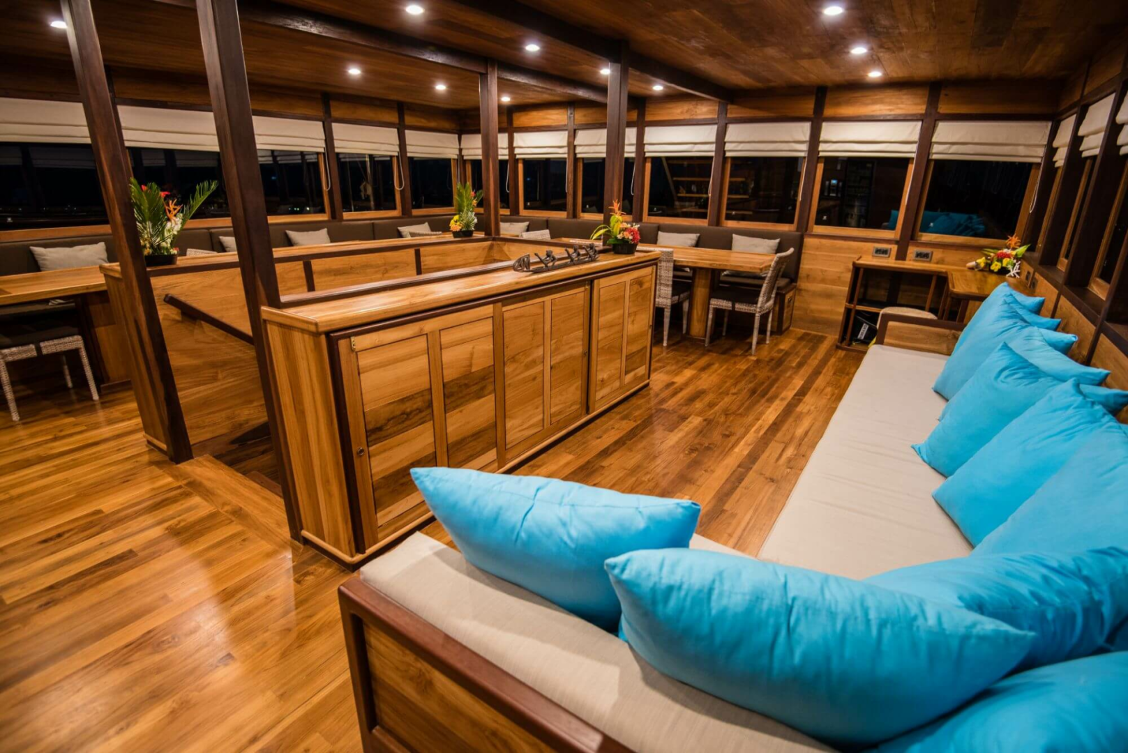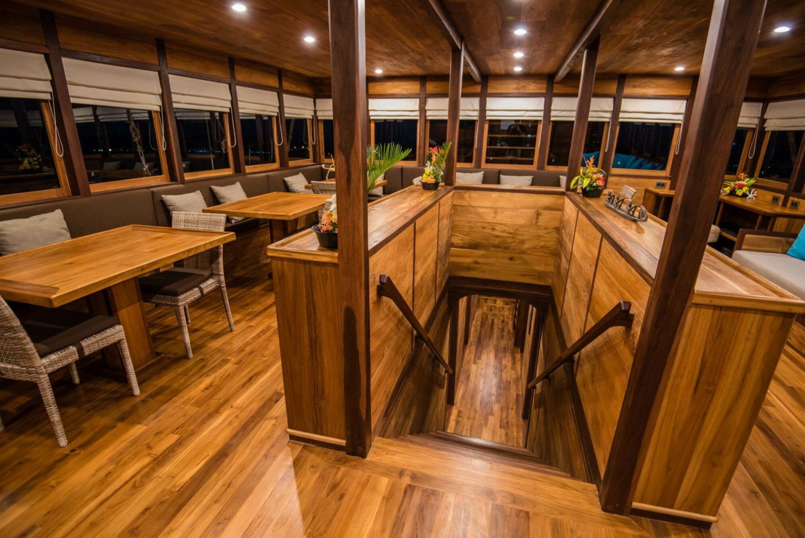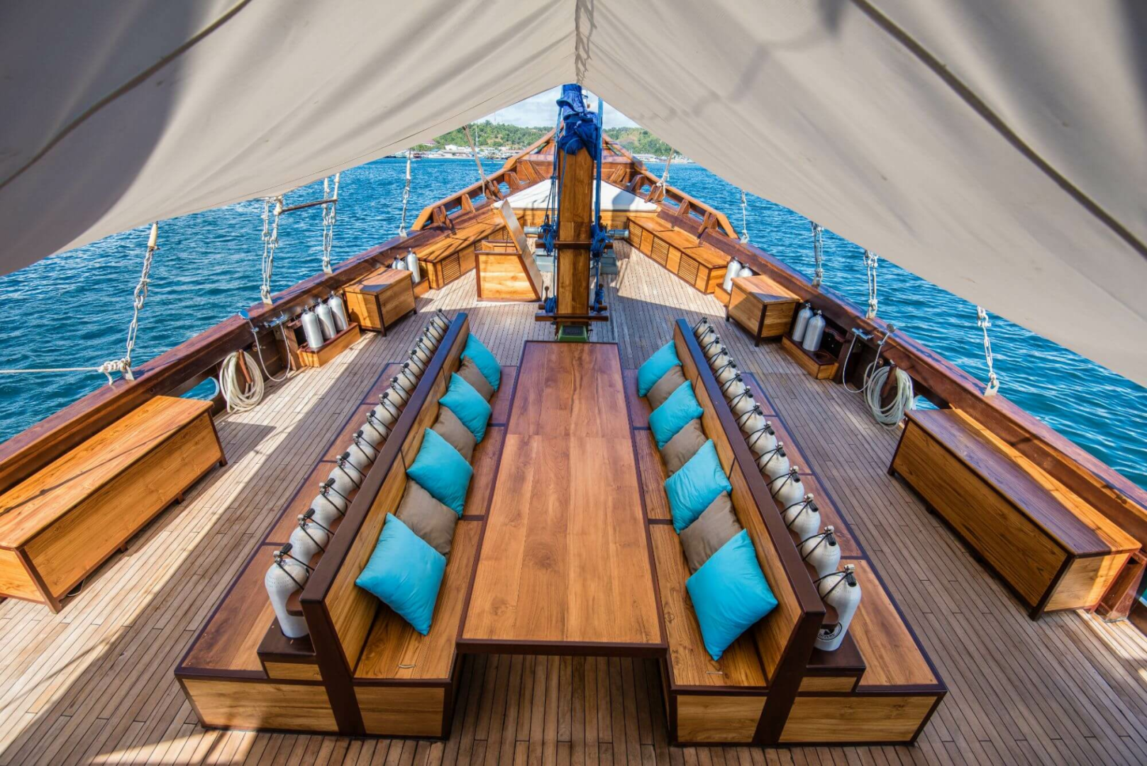 Das Boot ist im traditionellen indonesischen Stil gebaut und ist wahrscheinlich das Beste in seiner Kategorie. Es kombiniert dezenten Luxus mit einem angemessenen Preis und großartigen, handgefertigten Routen.