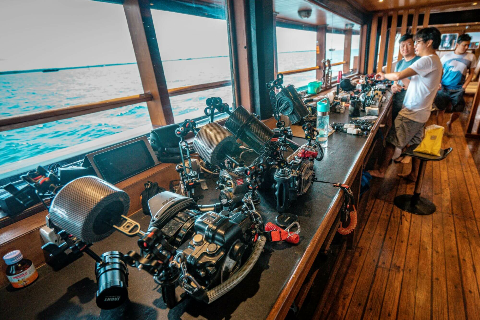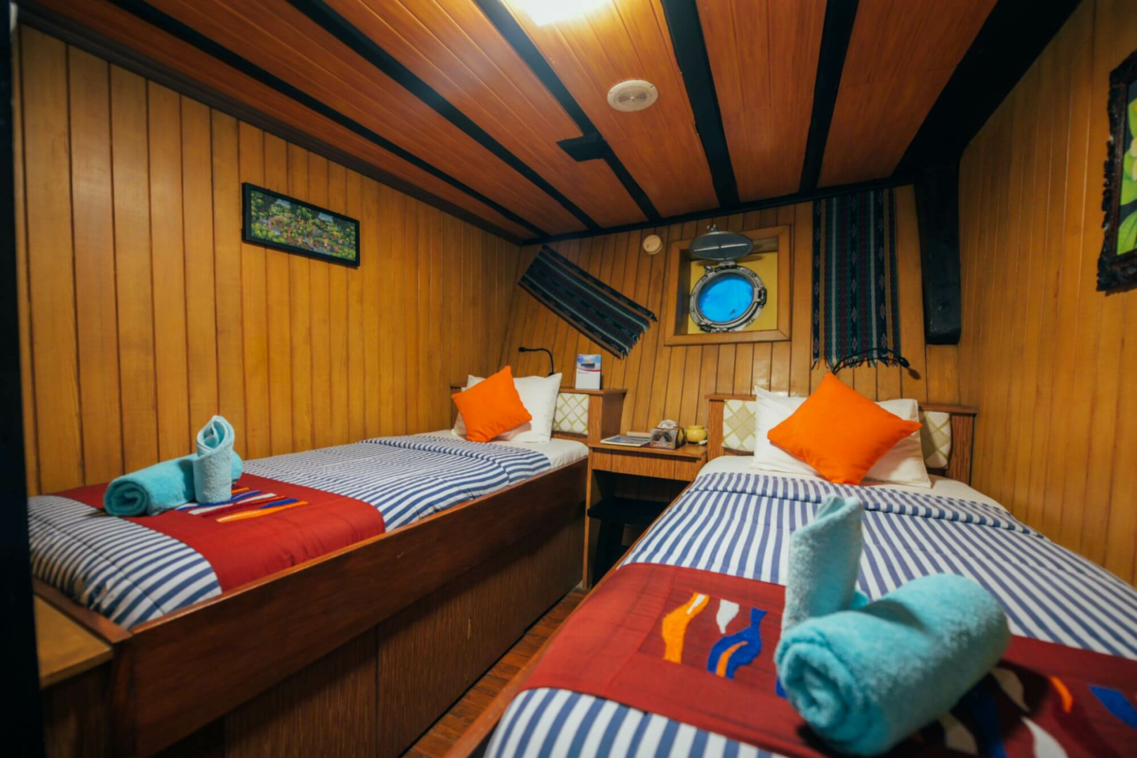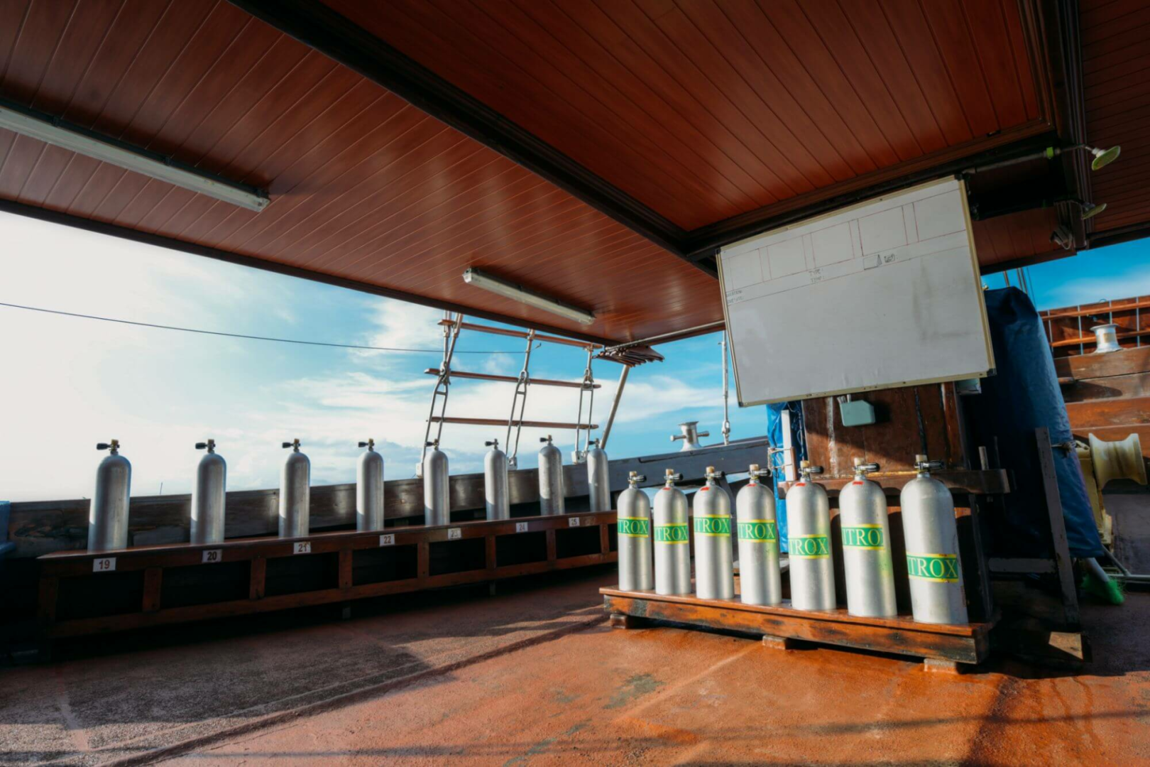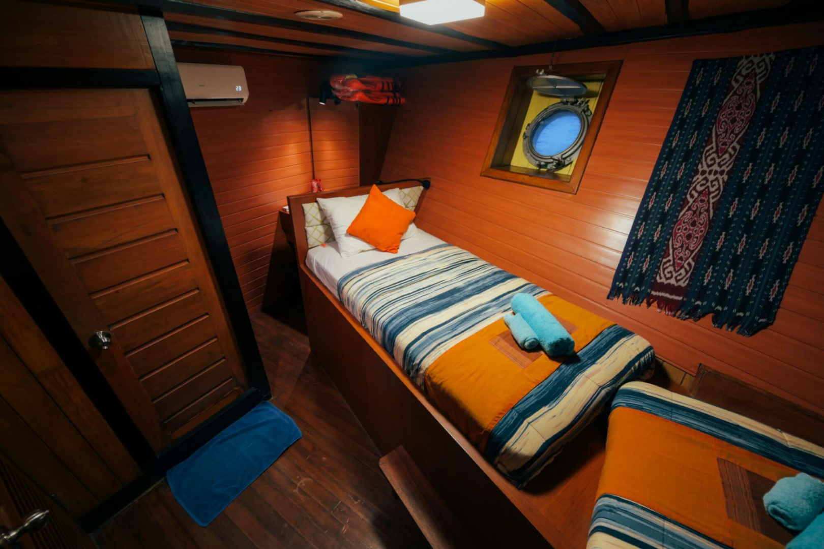 Die Taucher schlafen in zwölf blitzsauberen, etwas kleinen Kabinen mit Klimaanlage und eigenem Bad. Es gibt ein großartiges Tauchdeck, einen hervorragenden Kundenservice, großartiges Essen mit lokalem Geschmack, sehr erfahrene und unglaublich sachkundige Tauchmeister, die immer ein Lächeln auf den Lippen haben.