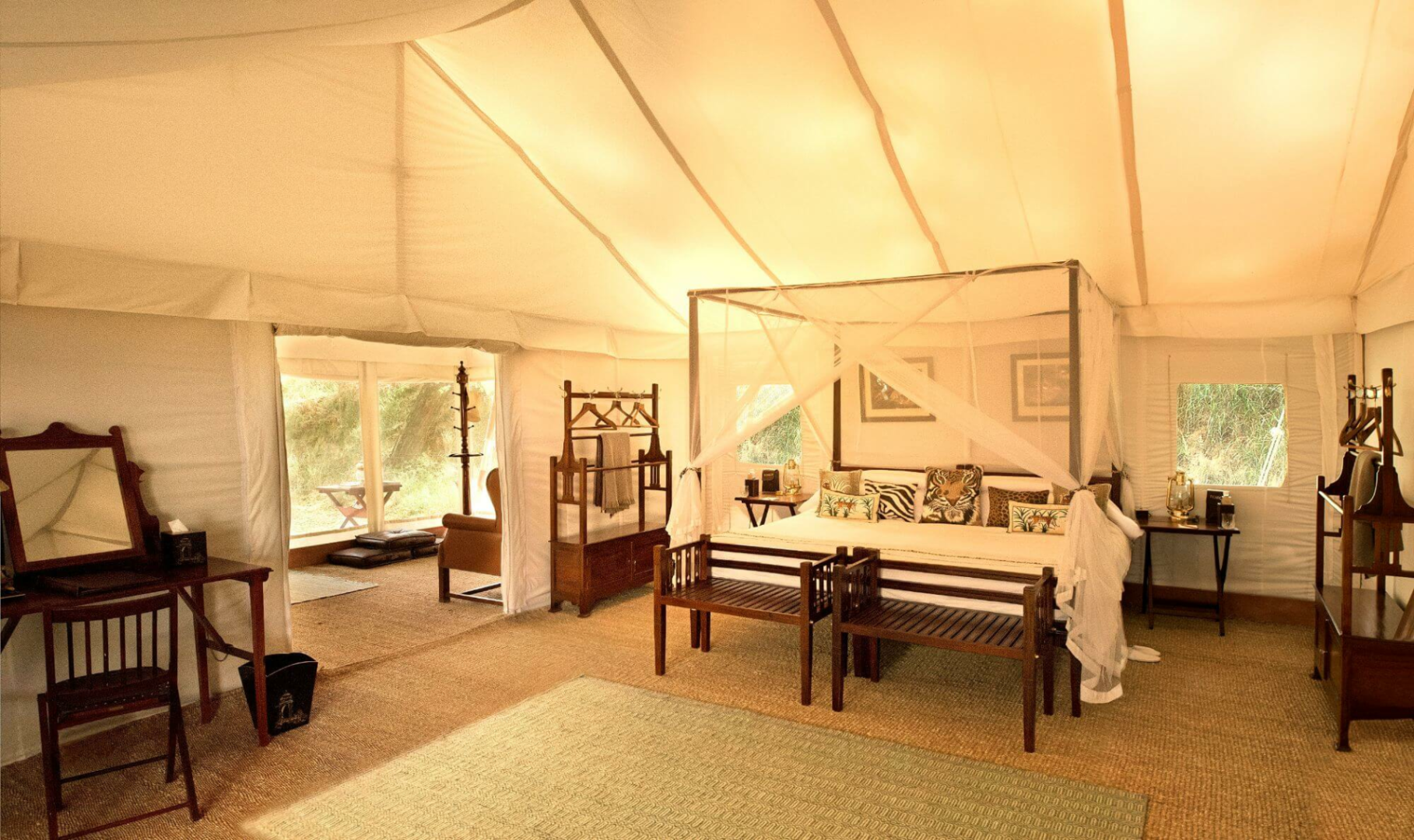 Die Cottages und elegant eingerichteten Luxuszelte liegen im weitläufigen Gelände nah zum Parkeingang.