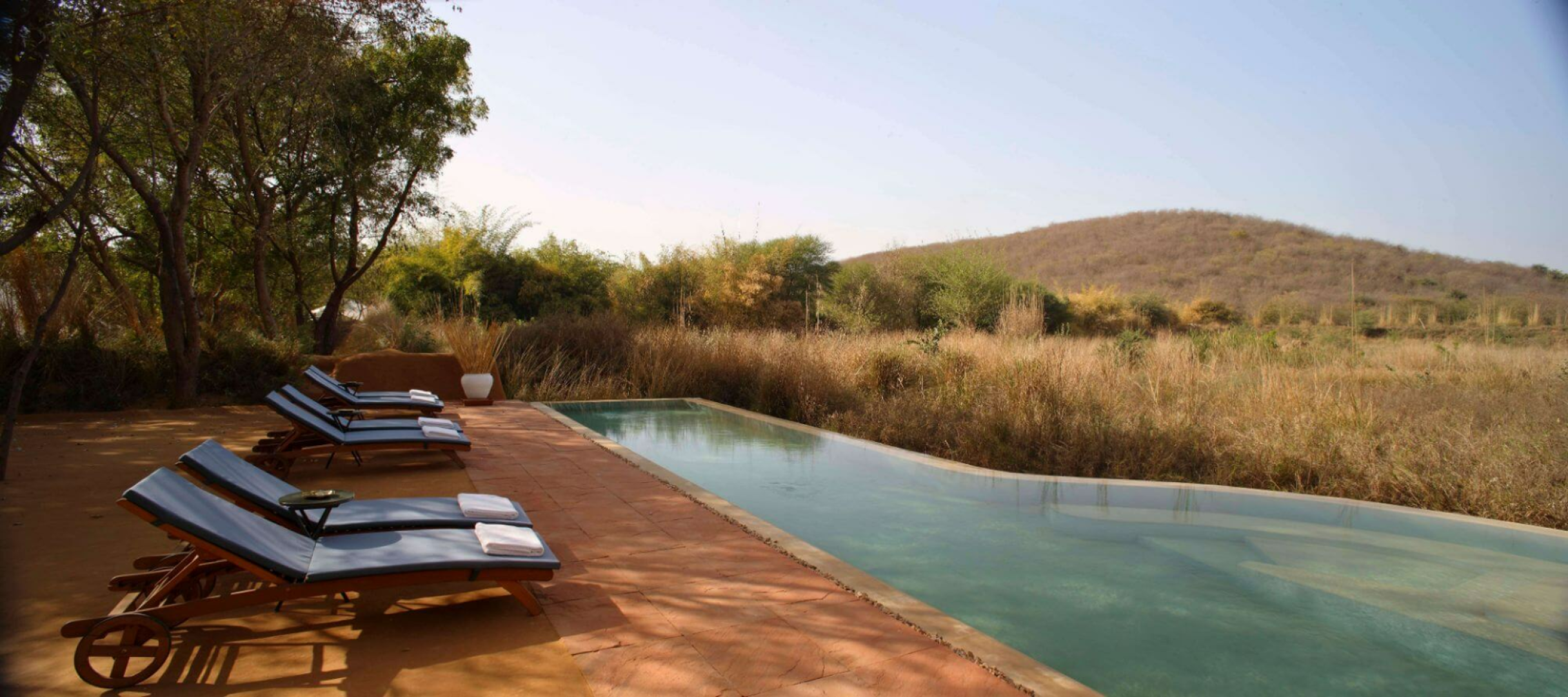 Khem Villas bei Ranthambhore ist eine wunderschön gemachte Luxus-Lodge, die konsequent ökologisch geführt wird, mit einem hervorragenden optischen Eindruck.