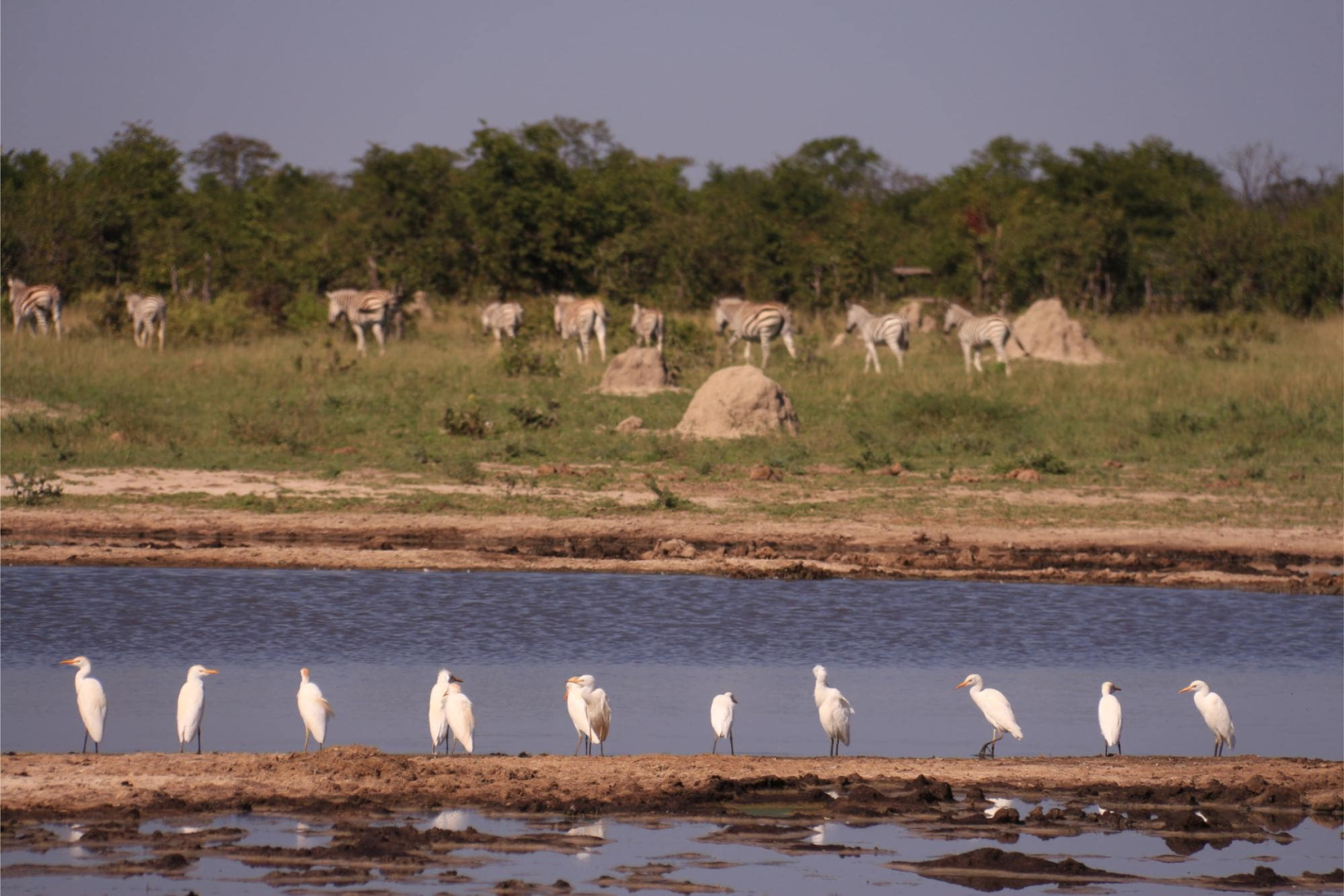 Wir reisen von Khwai ins Savuti-Sumpfgebiet. Die Savuti-Sümpfe, 35 km südwestlich von Kasane gelegen, genießen einen legendären Ruf in der Safariwelt. Nach fünfzehn Jahre Trockenzeit, in der der saisonale Savuti-Fluss komplett austrocknete, fließt der Savuti wieder. In der Trockenzeit haucht der Fluss dem austrocknenden Gebiet neues Leben in sonst aride Kalahari-Landschaft ein. Ein Segen für die Tierwelt der Region, die in Massen zu beobachten ist.