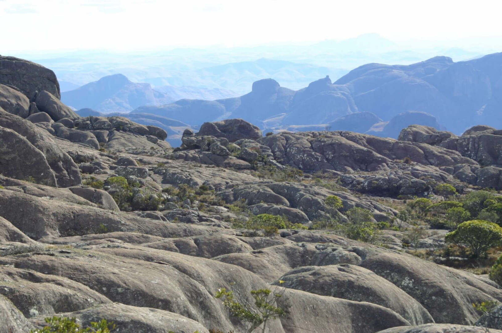 Wenn der Weg an Höhe gewinnt, dominieren die Granitgipfel und der gefaltete Steilhang die Aussicht. Am höchsten Punkt, auf 2.100 m, befindet sich eine Felsplatte, die als bequemer Picknickplatz dient und einen hervorragenden Aussichtspunkt bietet, um die Ringelschwanzlemuren auf den gegenüberliegenden Klippen zu beobachten. Diese Hochgebirgslemuren haben sich ein dickes Gefieder wachsen lassen, um sich gegen die Kälte in dieser Höhe zu schützen. Die gesamte Tour dauert etwa 10 Stunden, sie ist anstrengend, aber sicherlich eine der schönsten Wanderungen in dieser Gegend!