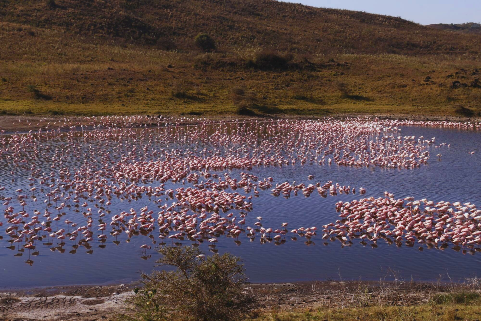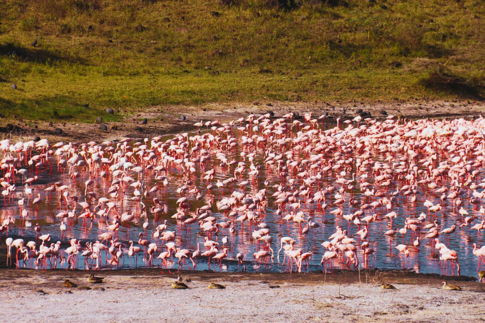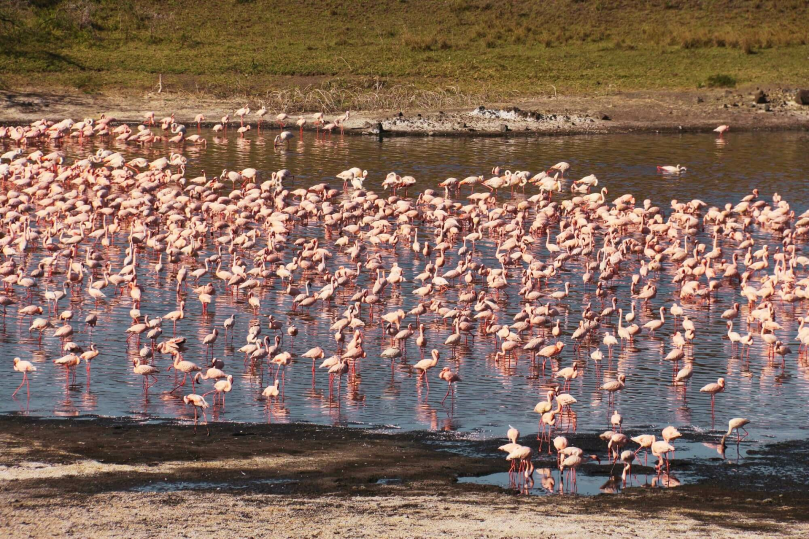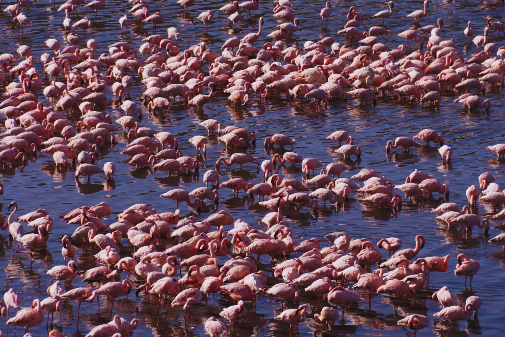 Flamingos lieben alkalische oder salzige Seen, einige dieser Gewässer weisen hohe Anteile an Chloriden, Sulfaten, Fluoriden oder Natriumcarbonaten auf. Flamingos können dieses Wasser trinken und sich von den wenigen hier lebenden Organismen ernähren. Wo Flamingos leben, glänzen Fische durch ihre Abwesenheit oder wo es viele Fische gibt, fehlen die Flamingos. Ursache dafür ist die bestehende Nahrungskonkurrenz zwischen beiden.