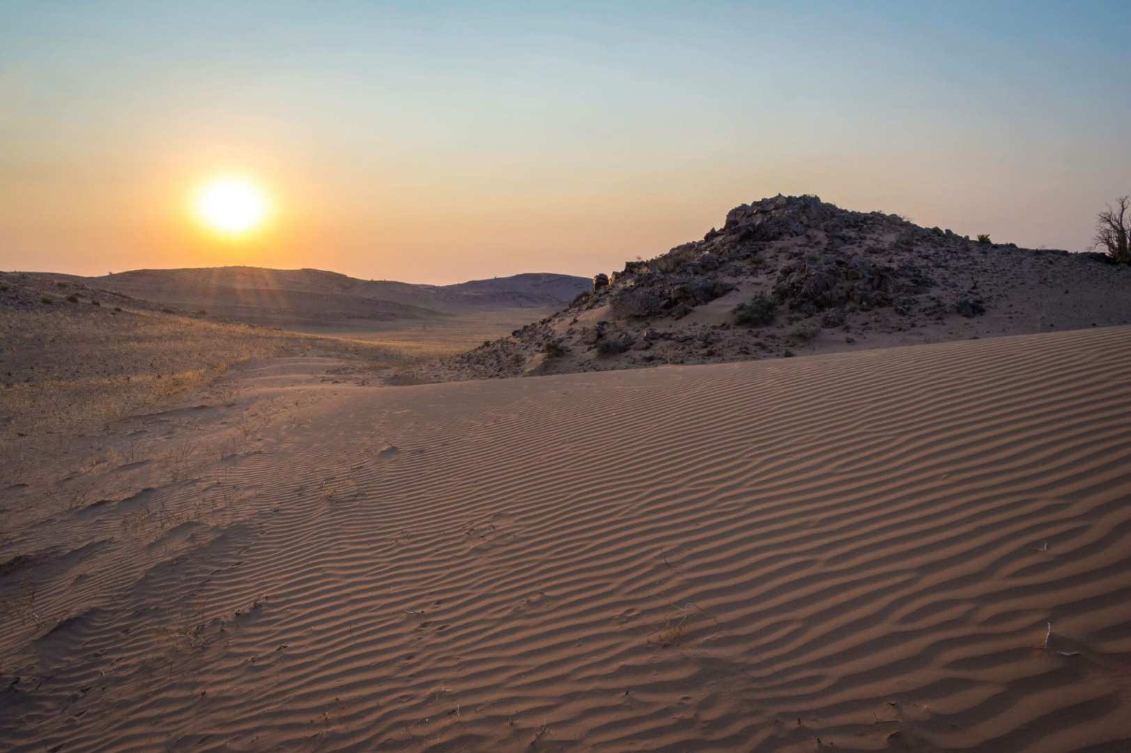 Damaraland ist ein spektakuläres Gebiet mit einer beeindruckenden Wüstenlandschaft, einer ungewöhnlich starken Tierwelt und großartigen Lodges. Zerklüftete Berge und flache Hochebenen, die sich zu tiefroten Kopjes und oft trockenen Ebenen entfalten, prägen die Landschaft. Und im Herz dieser scheinbar unwirtlichen Landschaft leben Herden von Bergzebras und Gemsböcken, Spitzmaulnashörnern und den bemerkenswerten Wüstenelefanten.