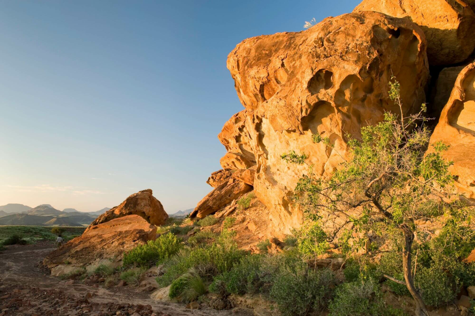 Zerklüftete Berge, flache von einer üppigen Tierwelt besiedelte Hochebenen, tiefroten Kopjes, versteinerte Bäume und uralte Felsmalereien.