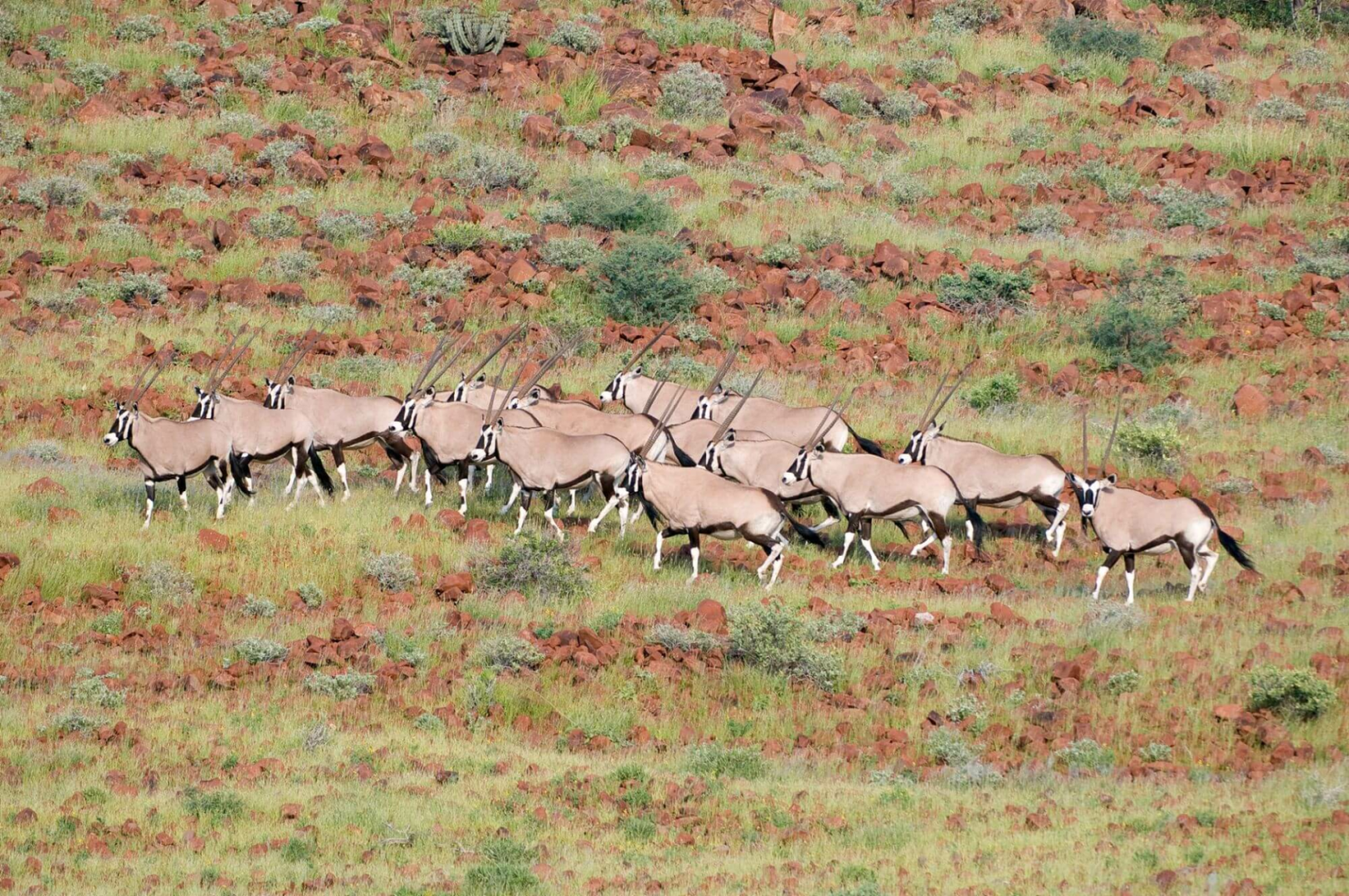 Weiter nördlich treffen wir auf den Hoanib-Fluss, der an die Wüste angepassten Elefanten in Massen anzieht. Weiter nördlich, wo sich uralte Lavafelder über die Ebenen erheben, nimmt die Vegetation zu - und mit ihr die Tierwelt. Das ist Reich der Spitzmaulnashörner. Eine Handvoll Lodges haben sich spezialisiert, Rhinos zu Fuß aufzuspüren - ein herzzerreißendes Erlebnis, was man nie vergisst.