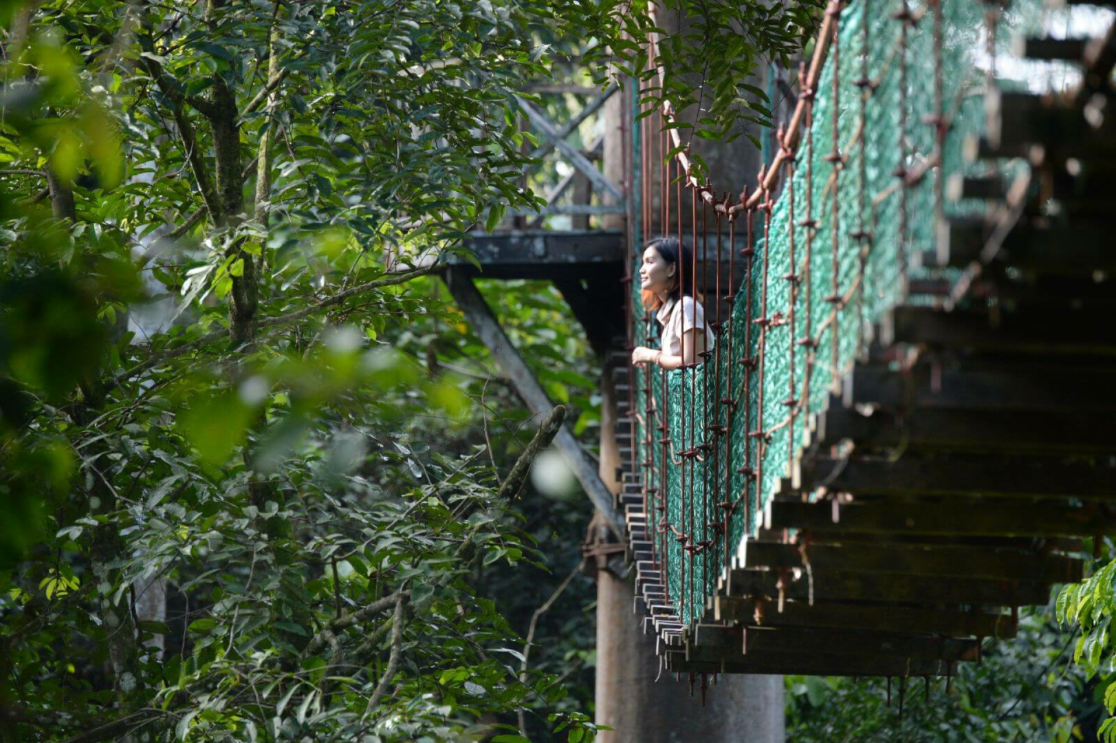 Du kannst Pfade durch den dichten tropischen Dschungel bewandern (einige davon führen zu versteckten Wasserfällen, die zum Baden einladen), auf Stegen zu Aussichtspunkten klettern und den morgendlichen Rauch des Regenwaldes von den Stegen aus beobachten.