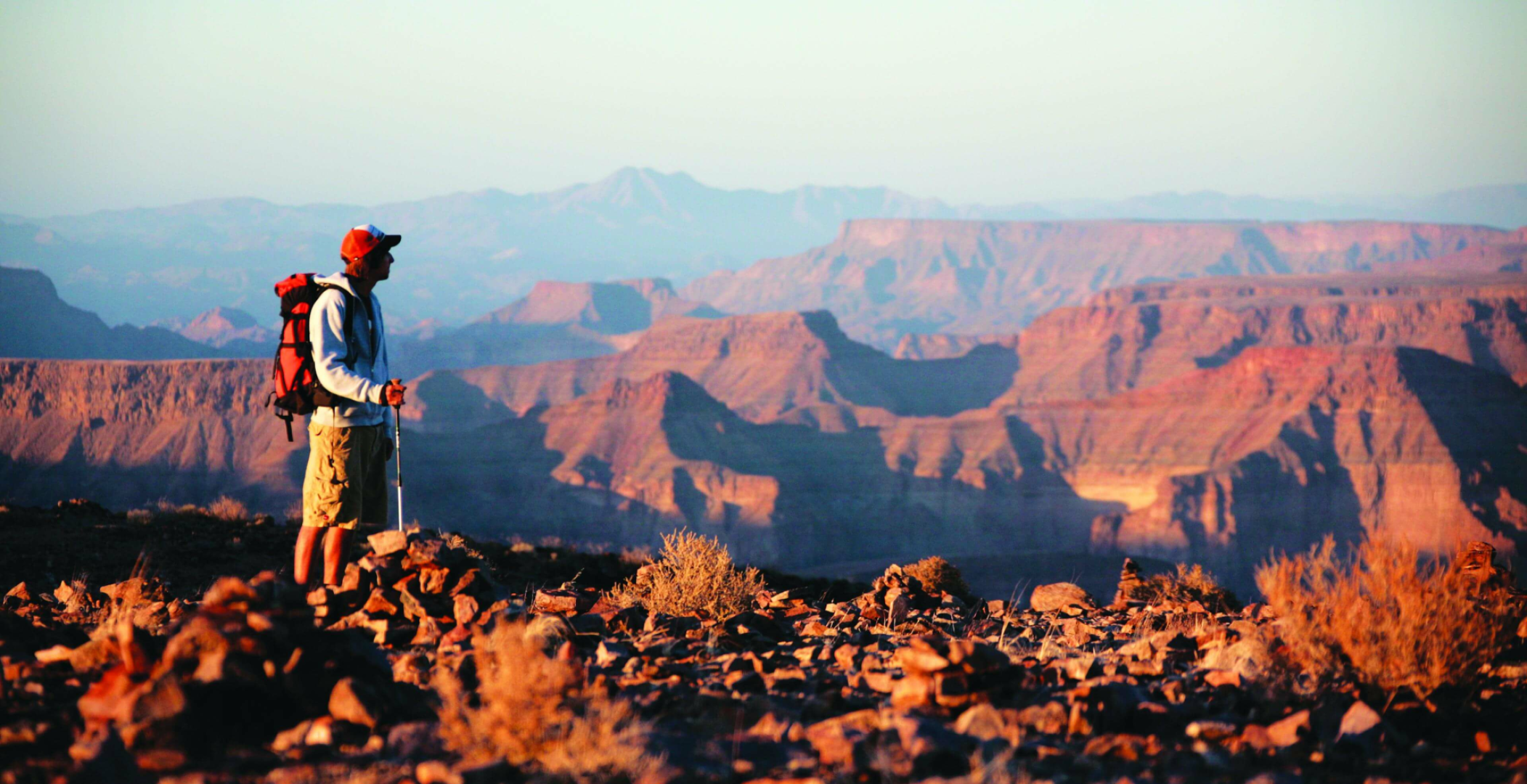 Für alle für das passive Bestaunen nicht genug ist, kann einfach die Wanderstiefel anziehen und an der direkten Kante des Canyons entlang wandern. Wandern ist anspruchsvoll, aber unglaublich lohnend. Das Angebot reicht von Tageswanderungen bis mehrtägigen Trekkings hinab zum Fluss. Die komplette Durchquerung zu Fuß des Fish River Canyon ist Afrika anspruchsvollstes mehrtägiges Trek. Diese fünftägige, selbst geführte Wanderung hat schon Expeditionscharakter. Wenn man das Trekking einmal begonnen hat, gibt es keinen einfachen Ausweg mehr! Mit der richtigen Vorbereitung und Ausrüstung gilt dieses Trekking zu zweifellos einer der lohnendsten Trekkings auf der Welt.