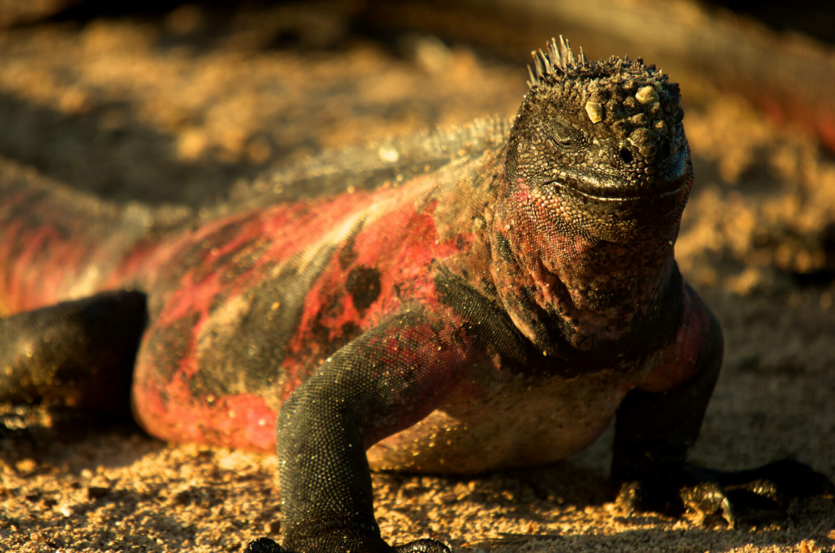 Meeresechsen bevölkern alle Küsten des Archipels. Als weltweit einzige Reptilien haben sie sich dem Leben im Meer vollkommen angepasst. Man beobachtet sie nachmittags, wie sie nach längeren Tauchgängen auf den warmen Lavasteinen liegen und ihre Köpfe der Sonne entgegenstrecken. Überschüssiges Salz wird durch die Nasenlöcher ausgestoßen. Bei älteren Tieren haben sich dadurch dicke Salzkrusten auf dem Schädel gebildet. Man kann die Reptilien ganzjährig auf jeder Insel mühelos beobachten.