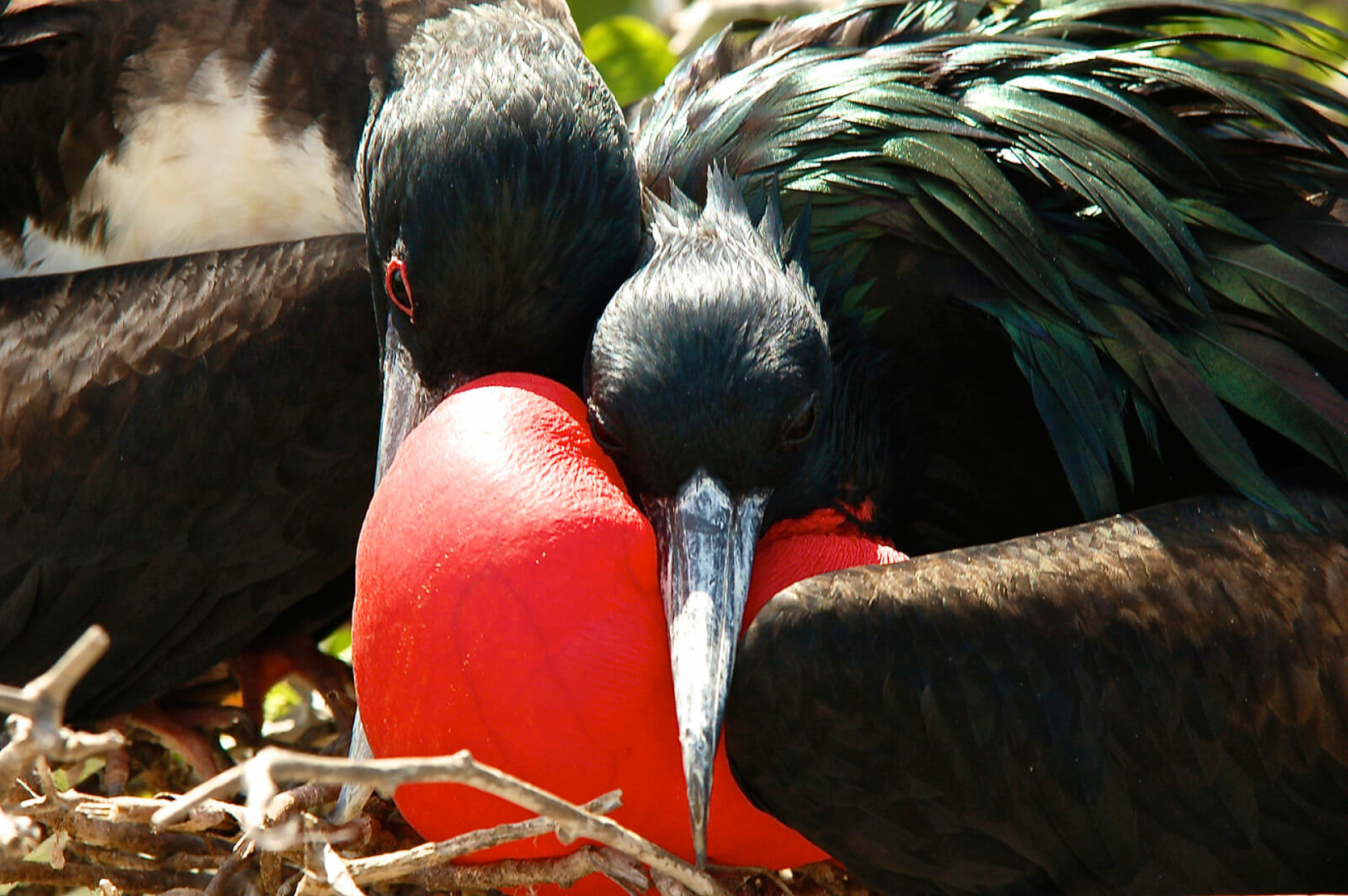 Am eindrucksvollsten präsentieren sich die Fregattvogel-Männchen während der Balz, bei der sich ihr roter Kehlsack aufbläst.