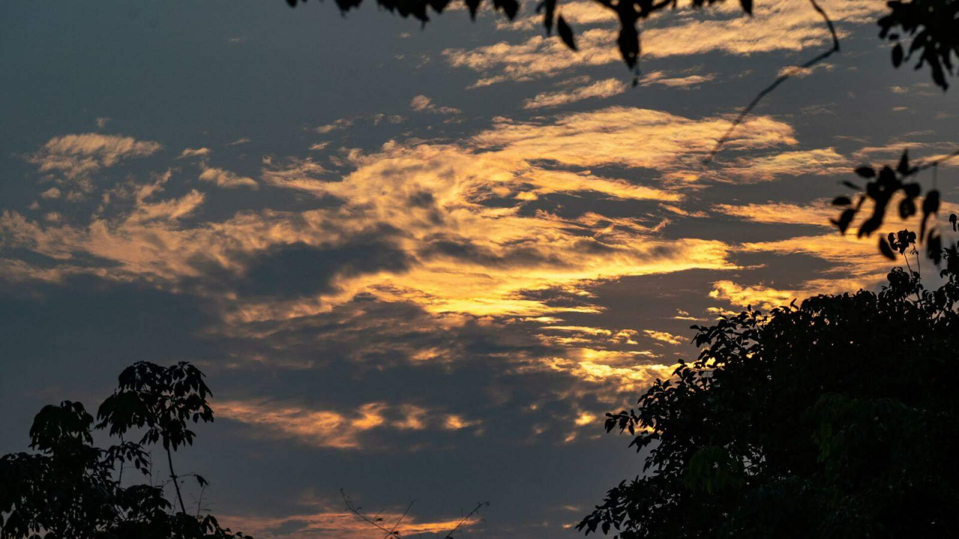 Am Abend versammeln sich die Vögel in Schwärmen, um sich für die Nacht niederzulassen, während der Himmel in ein spektakuläres Rot getaucht wird.
