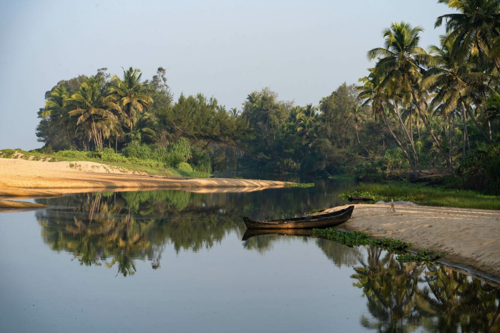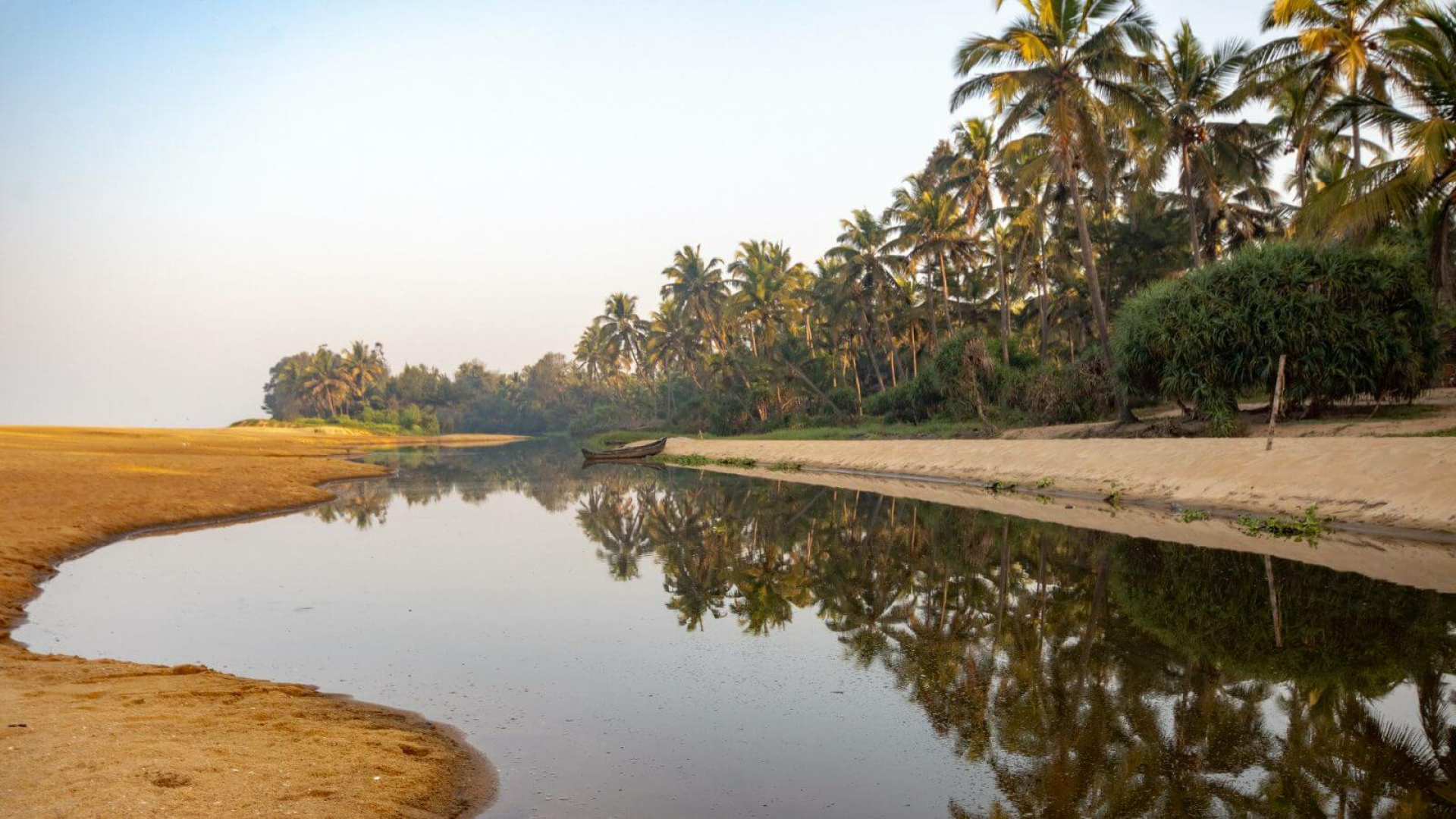 Dies ist nicht das klassische und bekanntere Backwaters-Erlebnis weiter südlich in Kerala. Die Backwaters an der Malabarküste von Kerala bestehen aus einem Zick-Zack-Netz von Lagunen, Seen und Kanälen, die sich nahtlos in einer endlosen Kette aus schimmerndem Wasser aneinanderreihen.