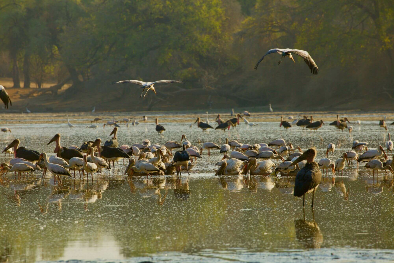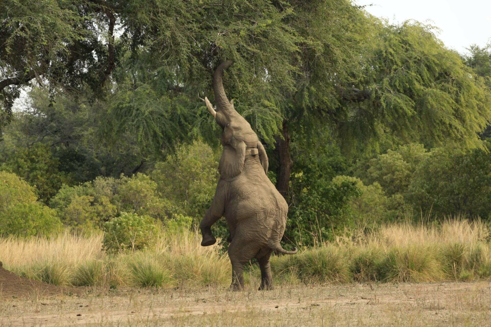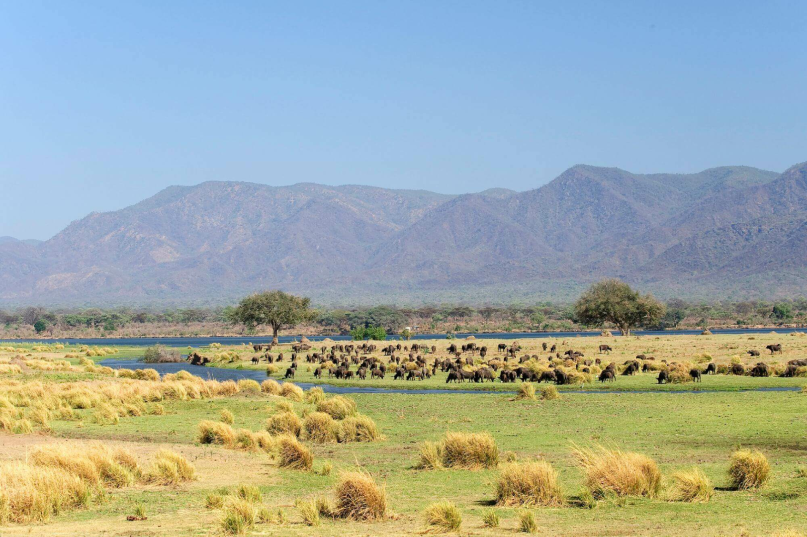 Die Landschaft im Mana Pools ist nichts anders als spektakulär. Das langsam fließende Wasser des mächtigen Sambesis sorgt für einen ungewöhnlich mineralreichen Uferboden, auf dem nahrungsreiches Grasland und beeindruckende Bestände Mahagoni- und Edelholzwälder wachsen, die wiederum große Populationen von Großwild ernähren. Diese atemberaubende Naturkulisse wird eingerahmt von den steilen Berghängen des großen afrikanischen Grabens.