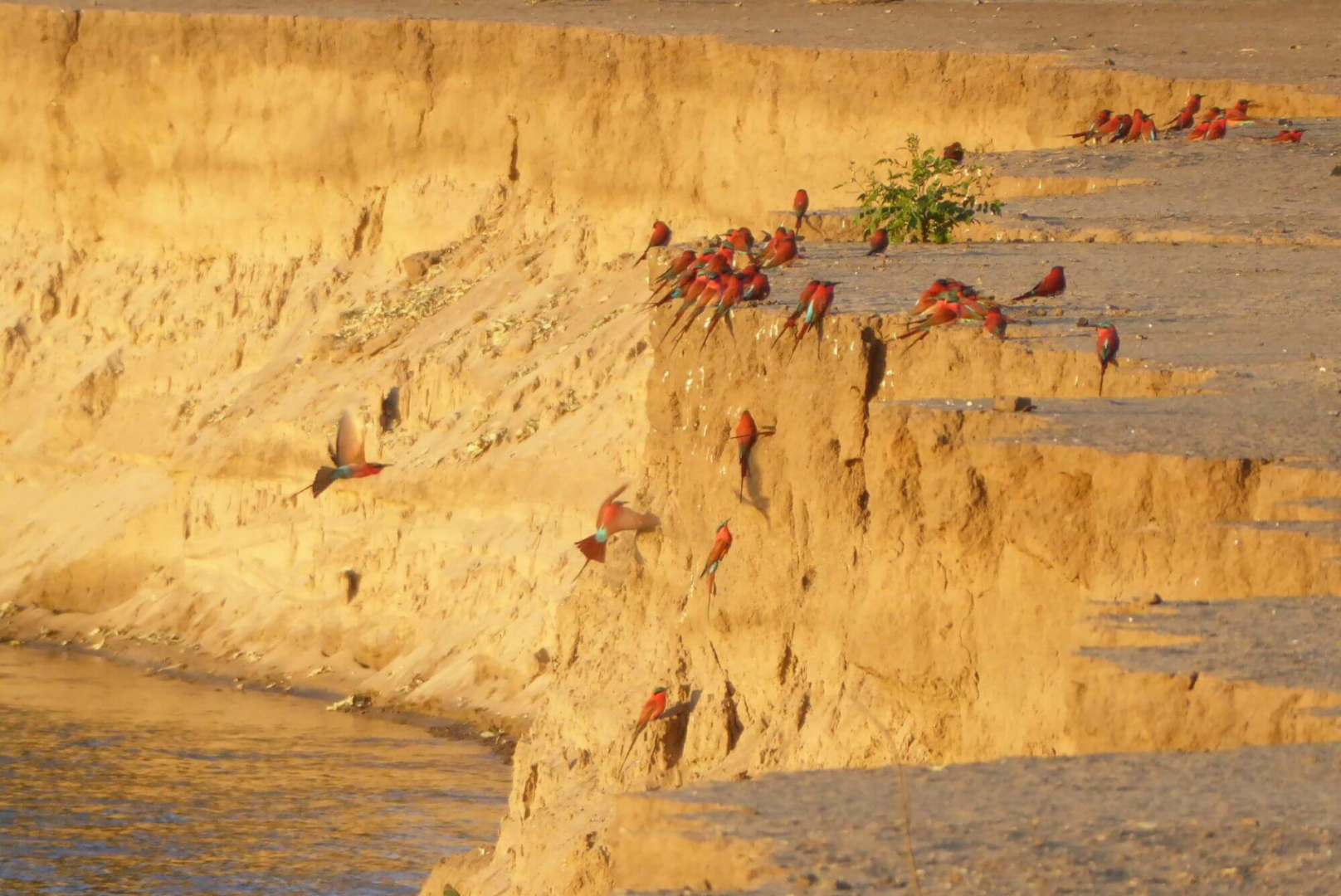 Vogelliebhaber kommen in Manas voll auf ihre Kosten: 380 Vogelarten wurden im Park erfasst. Eisvögel, Kormorane, Reiher, Fischadler und Störche sind die ständigen Begleiter auf einer Kanusafari. In der Trockenzeit kann man auch beeindruckende Kolonien von bunten Karminbienenfressern am Ufer des Sambesis sehen.
