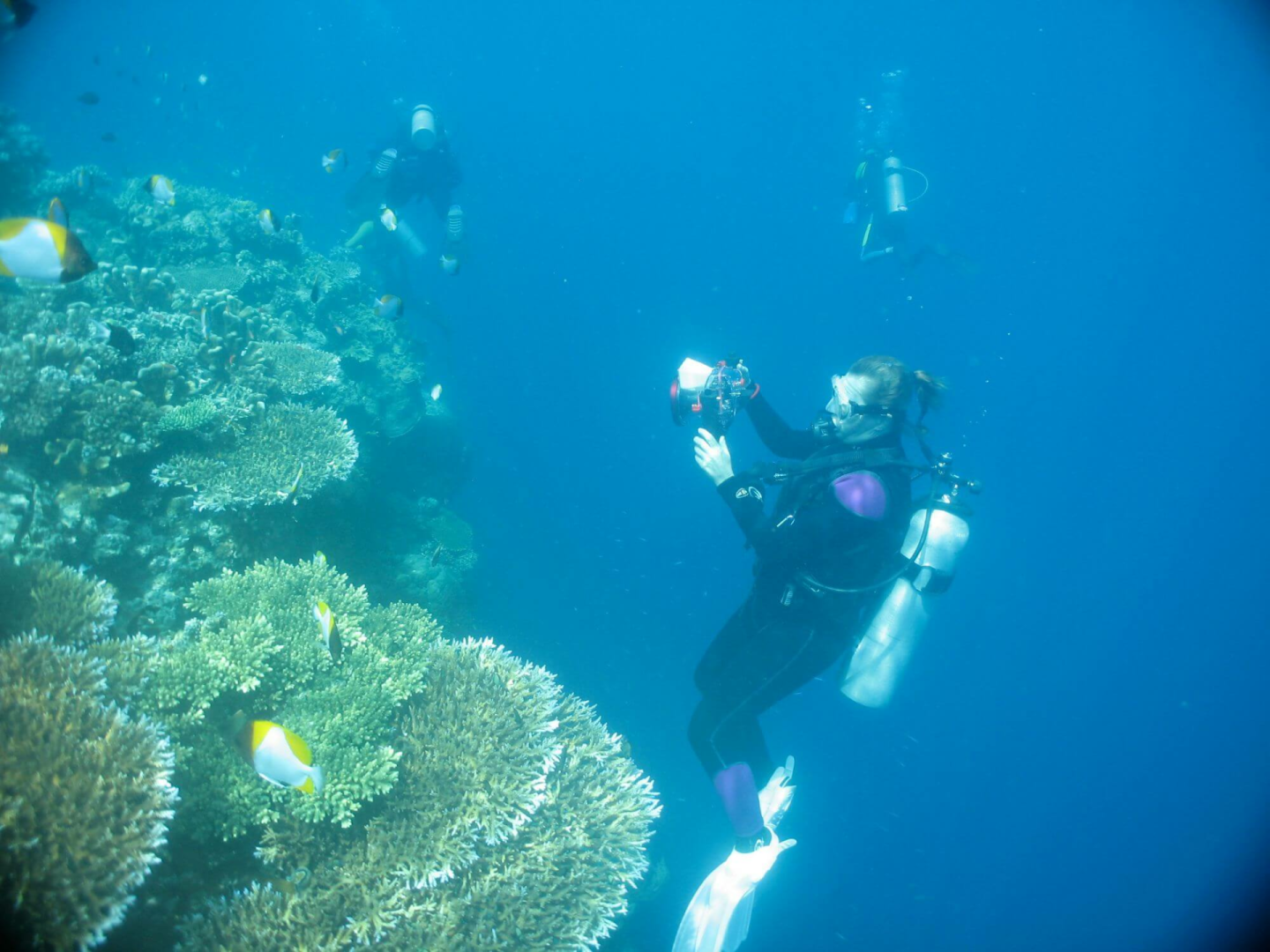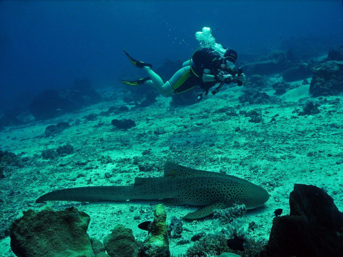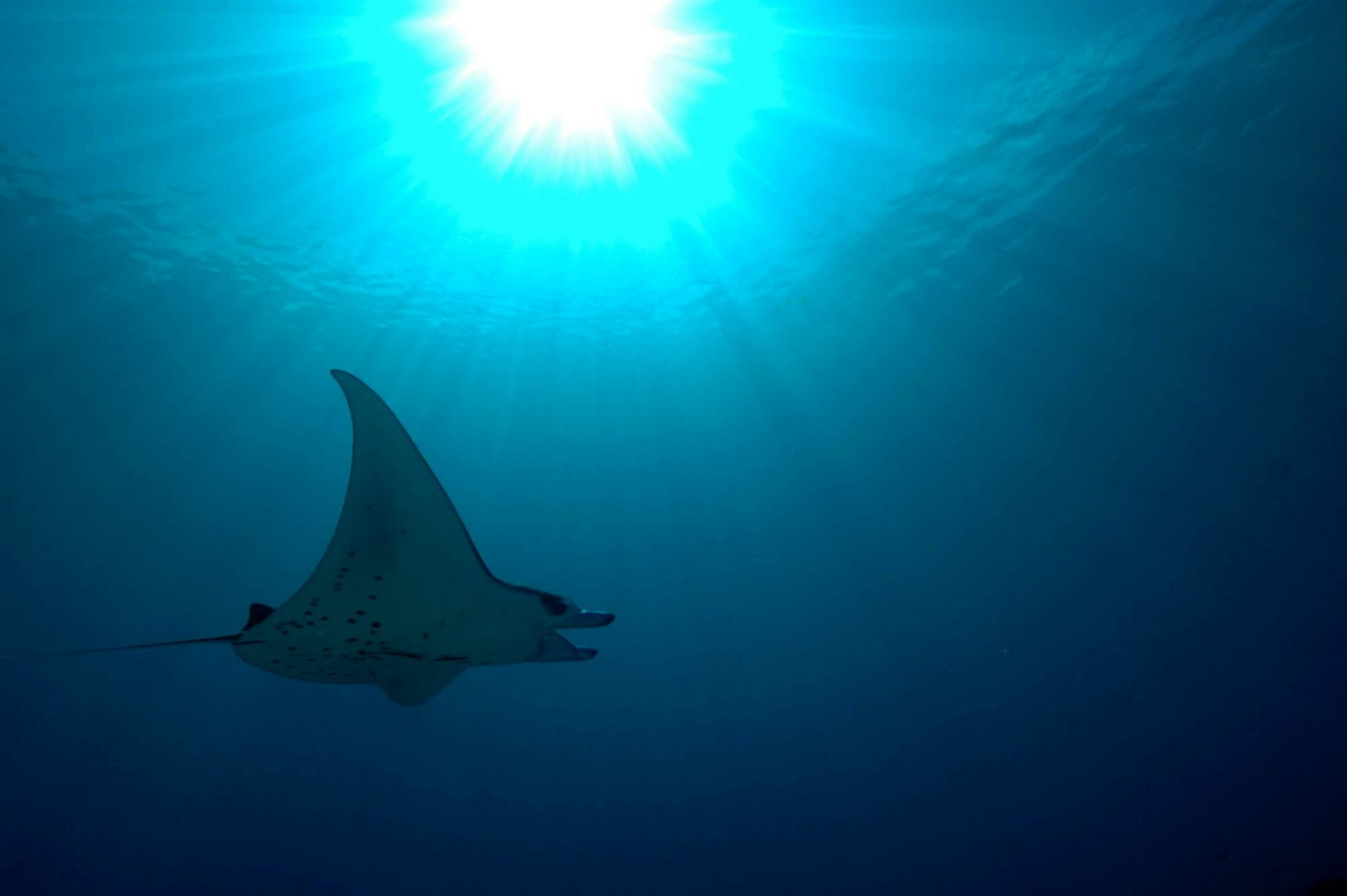 Millionen von orangefarbenen ungefährlichen Quallen, unzählige Meereschildkröten und Mantas, Walhaie.