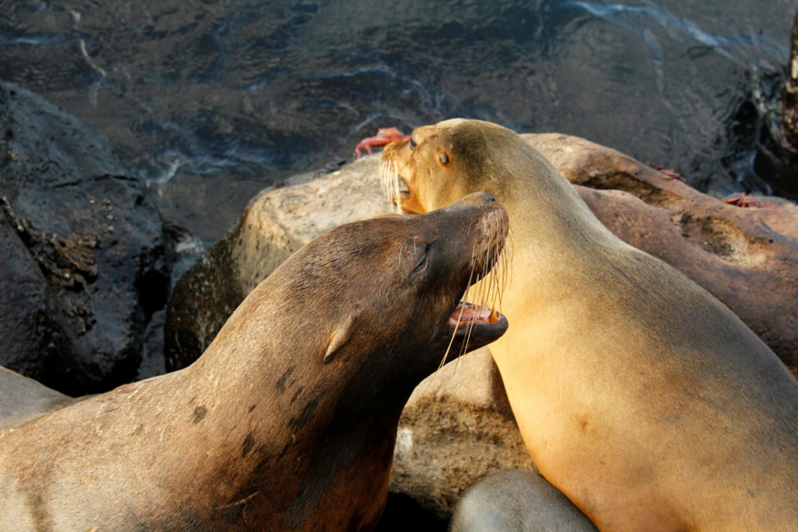 Die Galapagos-Inseln sind ein Vogelparadies. Eine der bekanntesten Vogelarten im Archipel ist der Fregattvogel, der Nahrungskonkurrent der Blaufußtölpel.