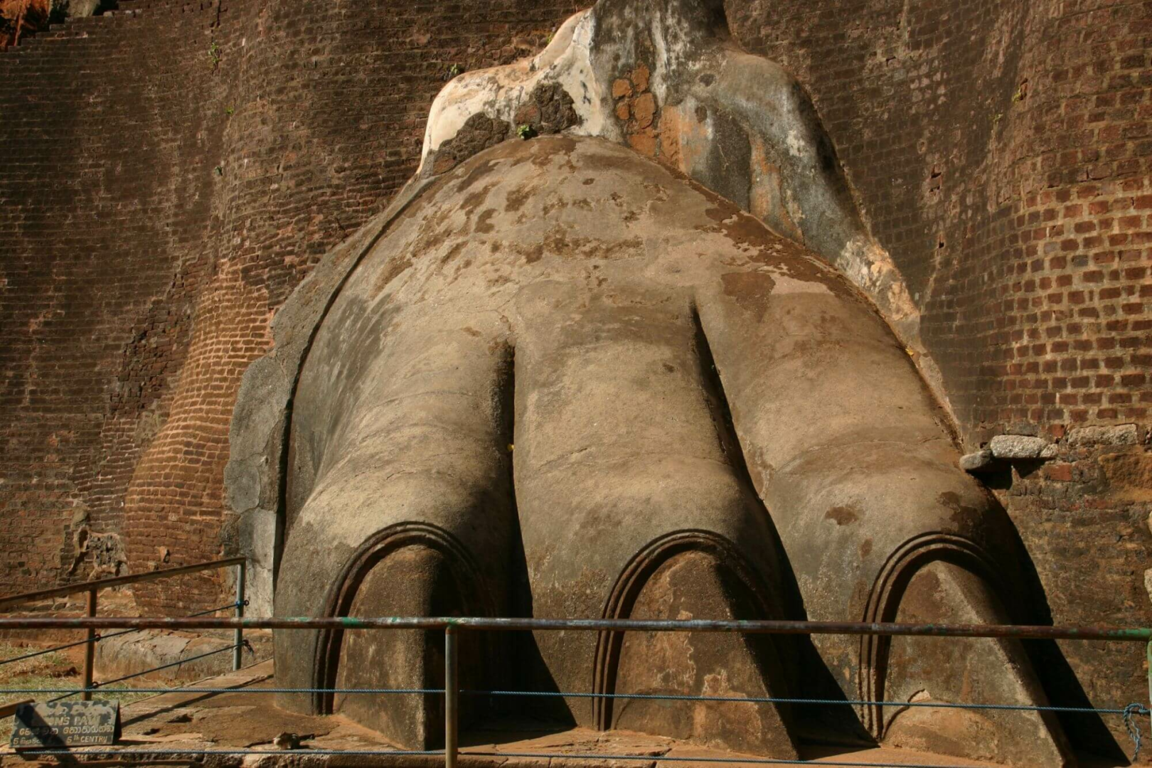 Der Zugang zur Spitze des Felsens ist ein Abenteuer für sich: 1200 Stufen, die nicht alle leicht zu bewältigen sind, wurden in den Felsen gegraben, um ihn zu erklimmen. Auf dem Weg dorthin kommt man an Höhlen vorbei, die mit antiken Fresken bemalt sind und den in Stein gehauenen Klauen einer einstigen Löwenstatue (die dem Felsen ihren Namen gab). Der Aufstieg ist in der Hitze ein wenig beschwerlich, aber machbar.