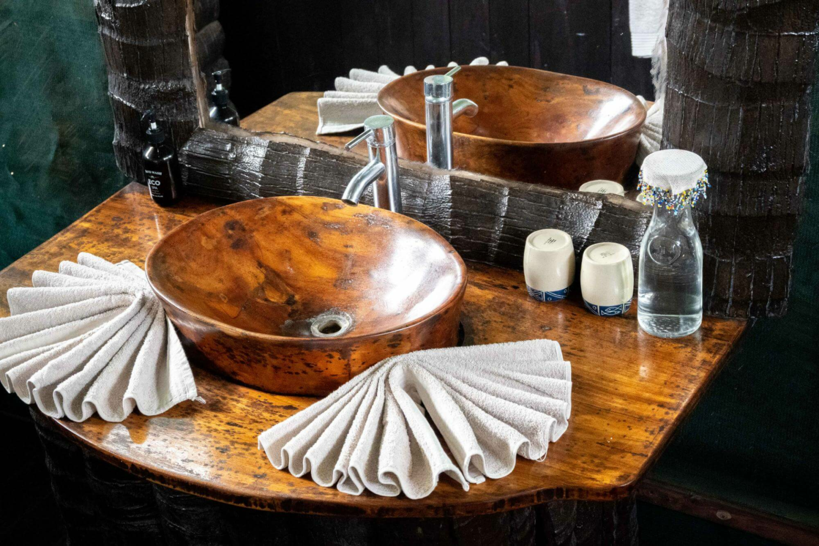 Die Zelte sind komfortabel und verfügen über ein Außenbad im hinteren Bereich mit Fliegengitter.