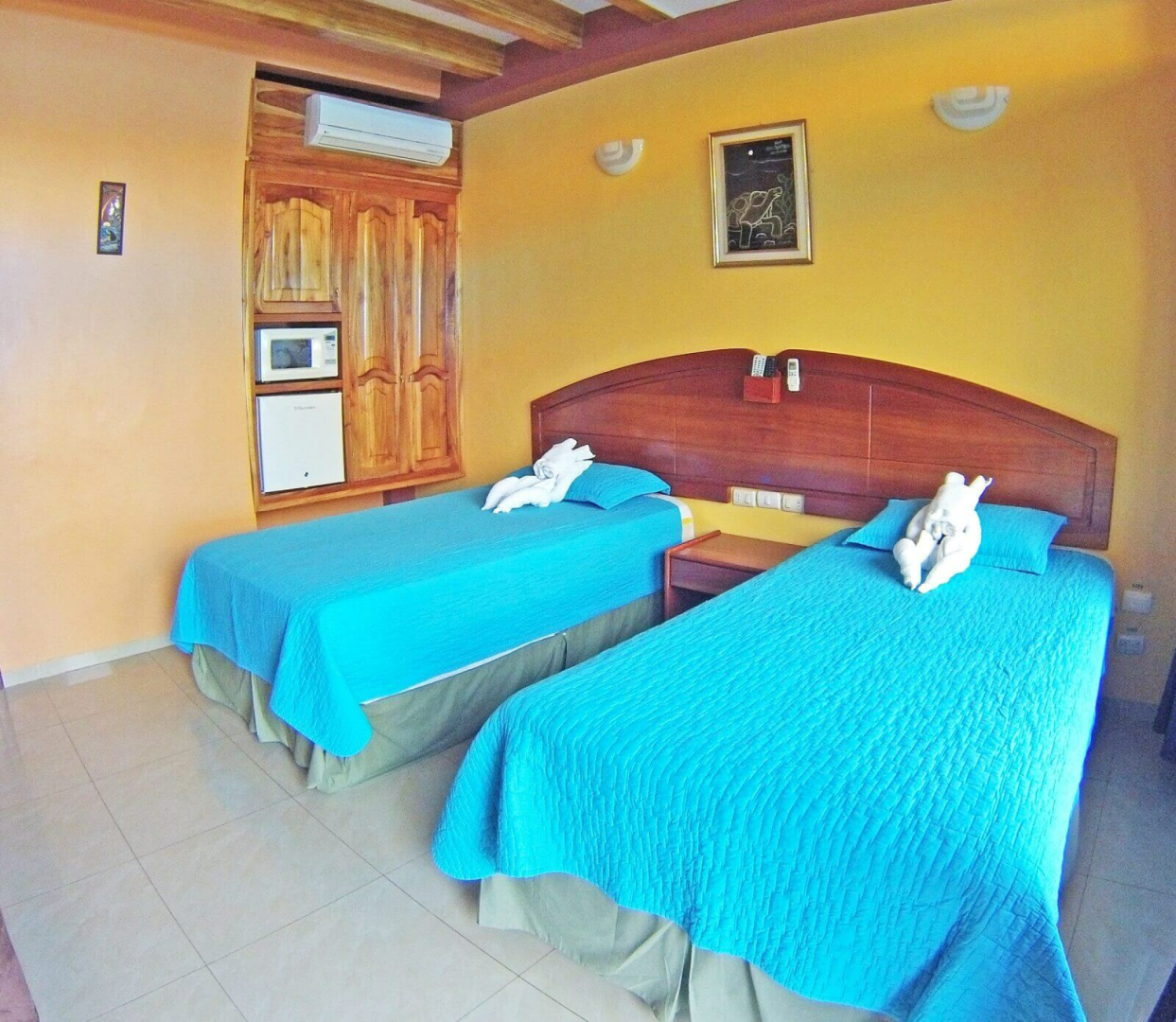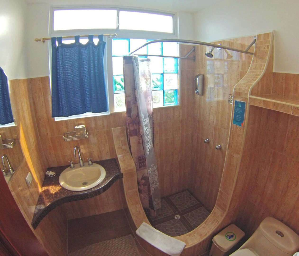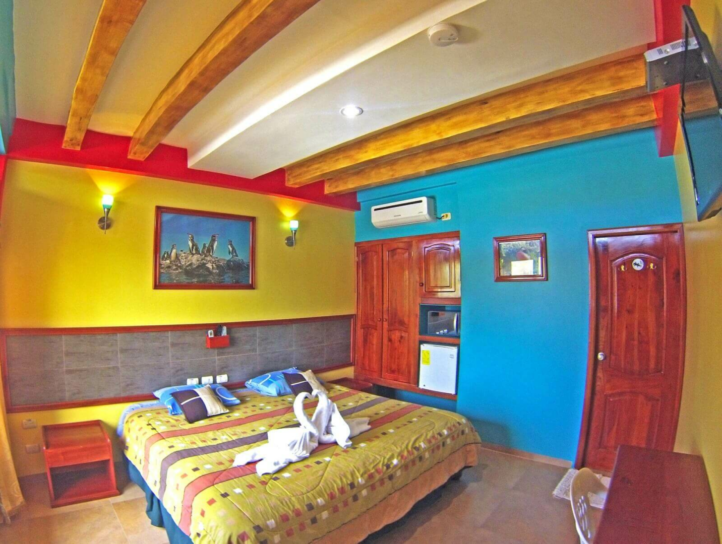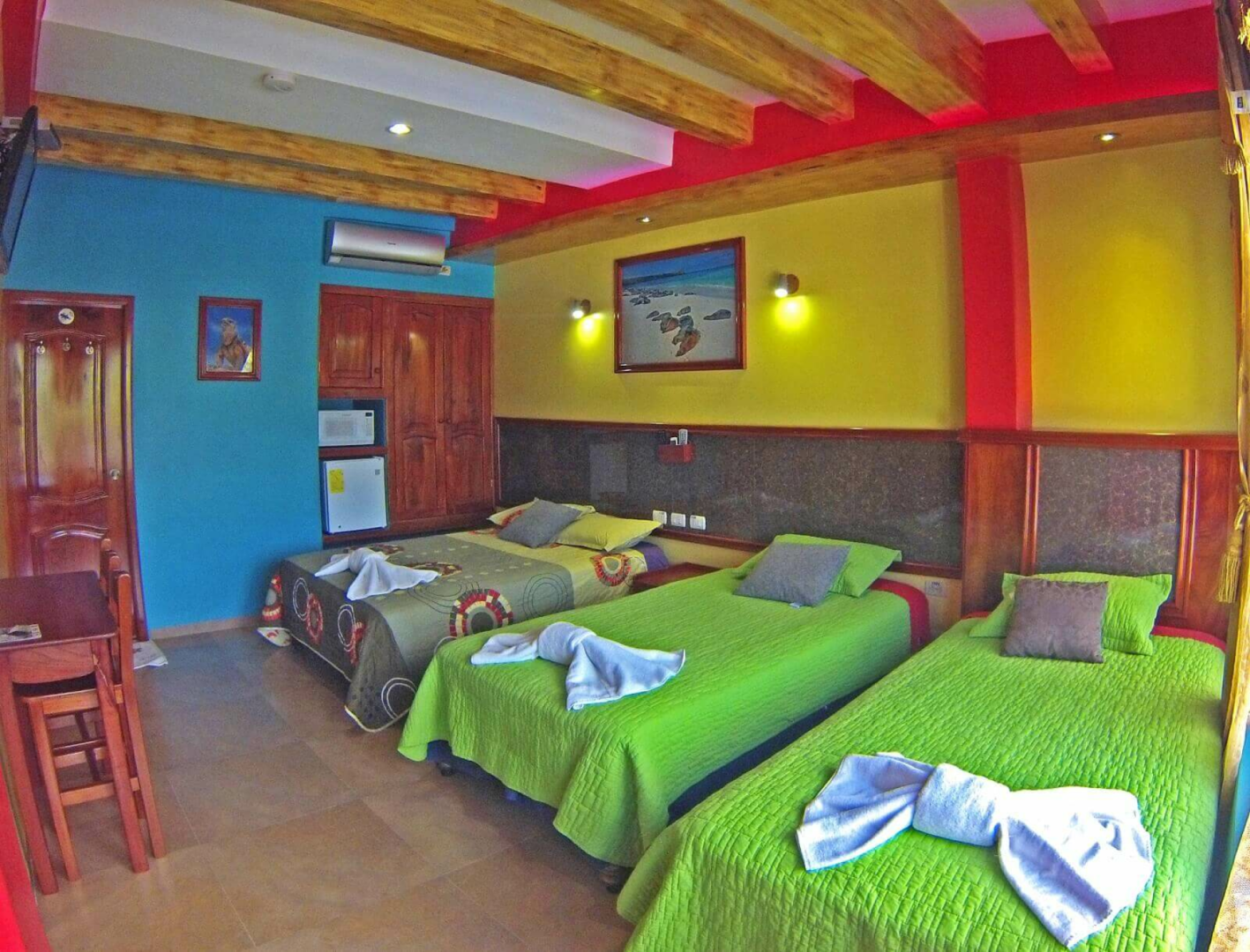 Am Stadtrand von Puerto Baquerizo Moreno in ruhiger Lage an einem Berghang gelegen und doch nur 10 Minuten Fußweg zum Strand bietet das Galapagos Ecofriendly eine gute Übernachtungsmöglichkeit. Die Zimmer sind sehr farbenfroh, individuell und einladend gestaltet und verfügen über eine Veranda mit wunderbarem Ausblick auf den Ort und die Bucht.