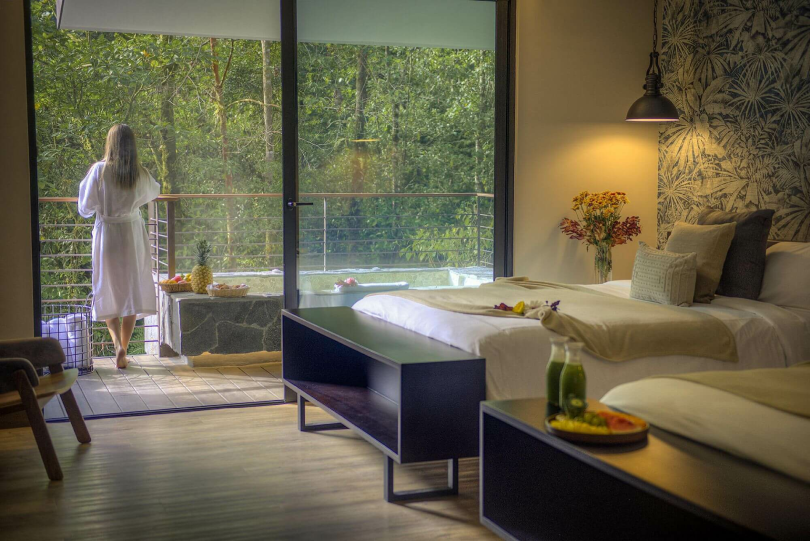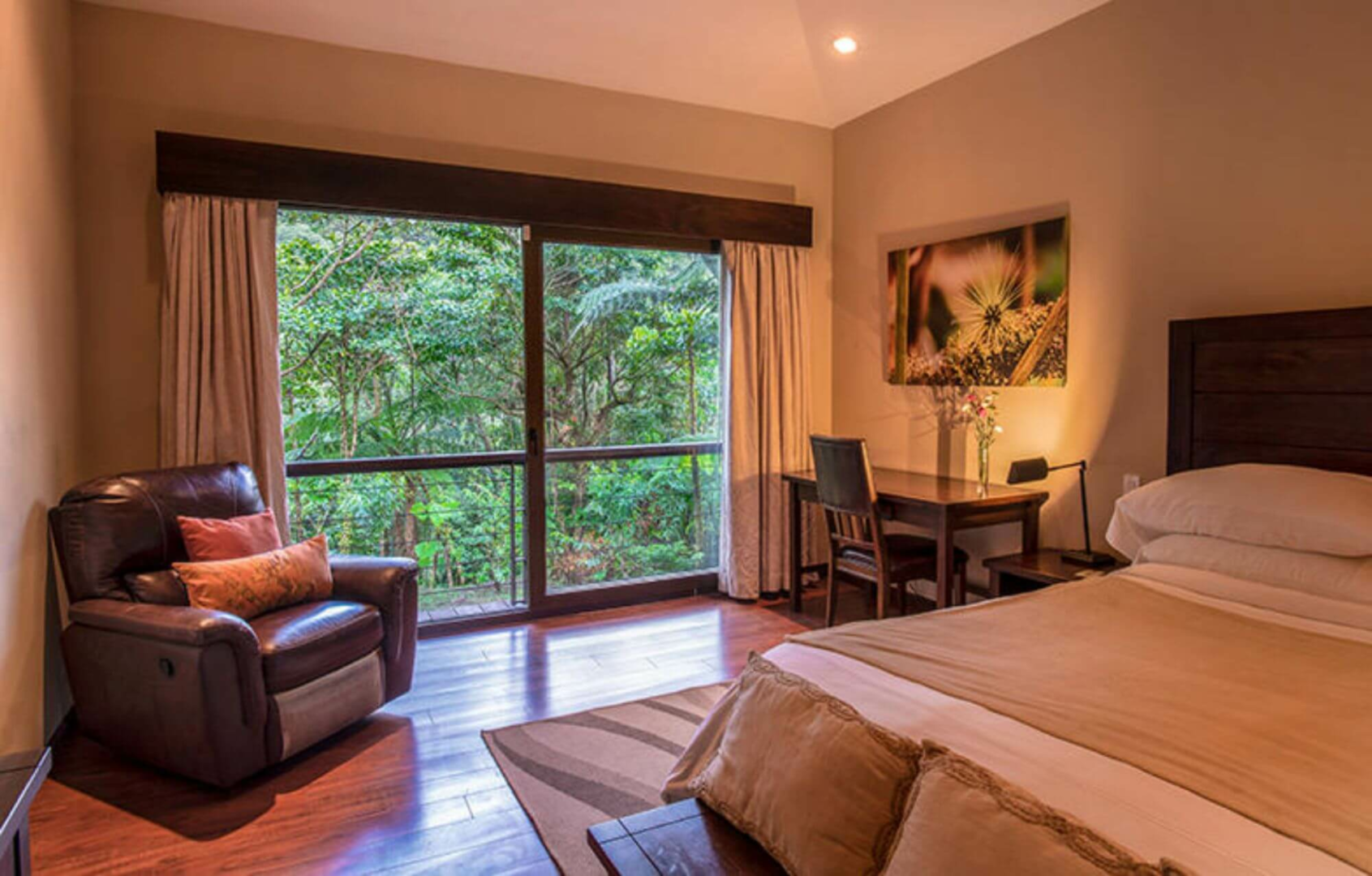 El Silencio befindet sich inmitten eines komplett wiederaufgeforsteten Nebelwaldes am Ende einer windigen, abenteuerlichen Straße, nur eine Stunde vom Flughafen San Jose entfernt. Das Anwesen ist auf einem 500 Hektar Grundstück. Es bietet 16 sehr komfortable Villen, die alle mit einem großzügigen Bad, einem Haartrockner, einer Minibar, einem kleinen Kühlschrank, einer Teekanne und einem Teekessel, einer Kaffeemaschine und einem Gießgerät für Kaffee ausgestattet sind. Zu jeder Villa gehört eine private Terrasse mit handgefertigten Möbeln sowie eine große Badewanne auf der Veranda, von der aus man die großartige Aussicht auf den Regenwald genießen kann!