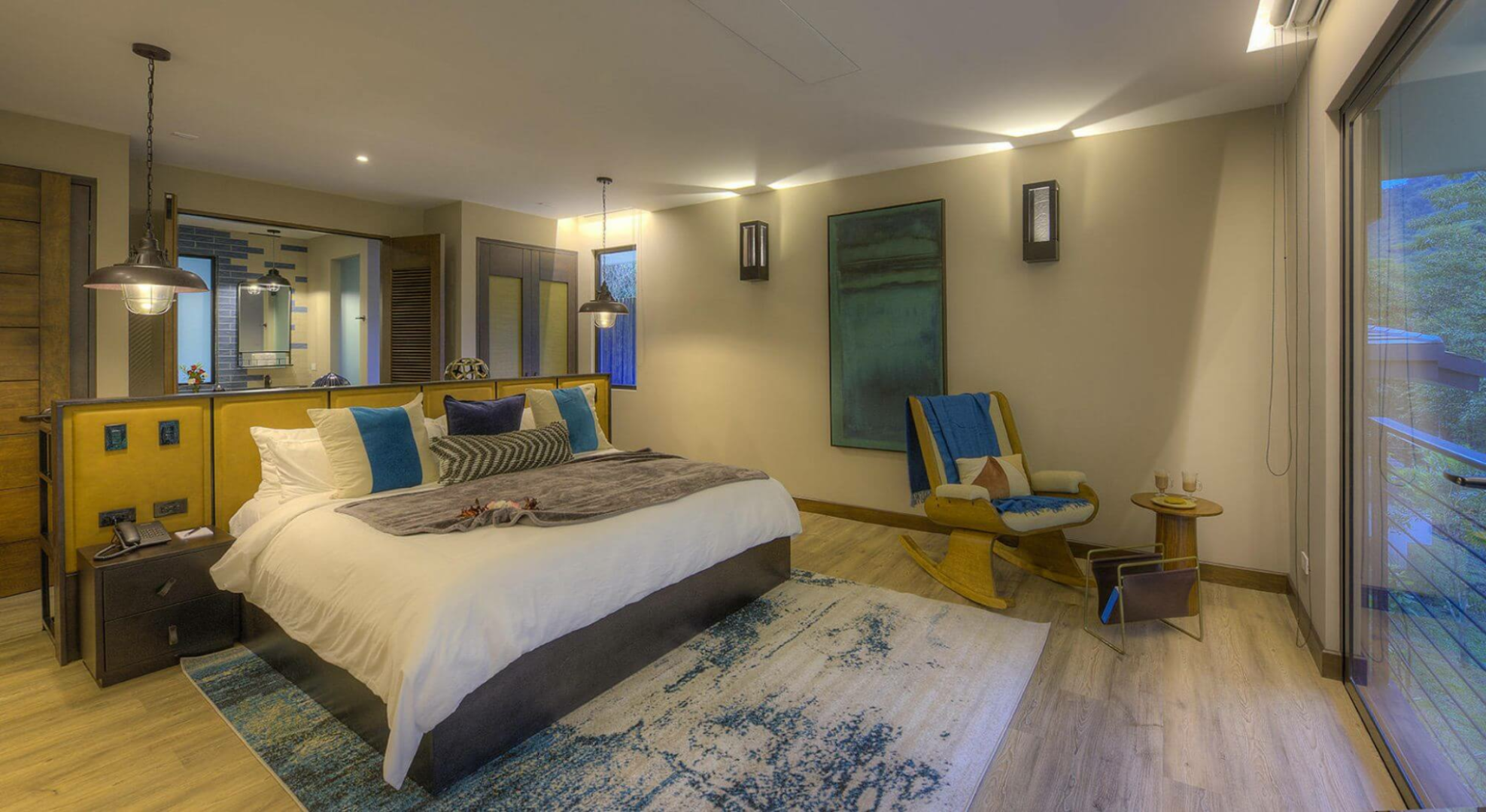 Die öffentlichen sind in der Hauptlodge untergebracht, einer Hütte im Schweizer Stil mit getrennten Lounge- und Restaurantbereichen, beide sehr stilvoll und modern eingerichtet. Das Essen ist 5-Sterne, mit Farm-to-Table-Gastronomie (die Zutaten wachsen im eigenen Gewächshaus). Was dich jedoch umhauen wird, ist das Niveau der angebotenen Aktivitäten: