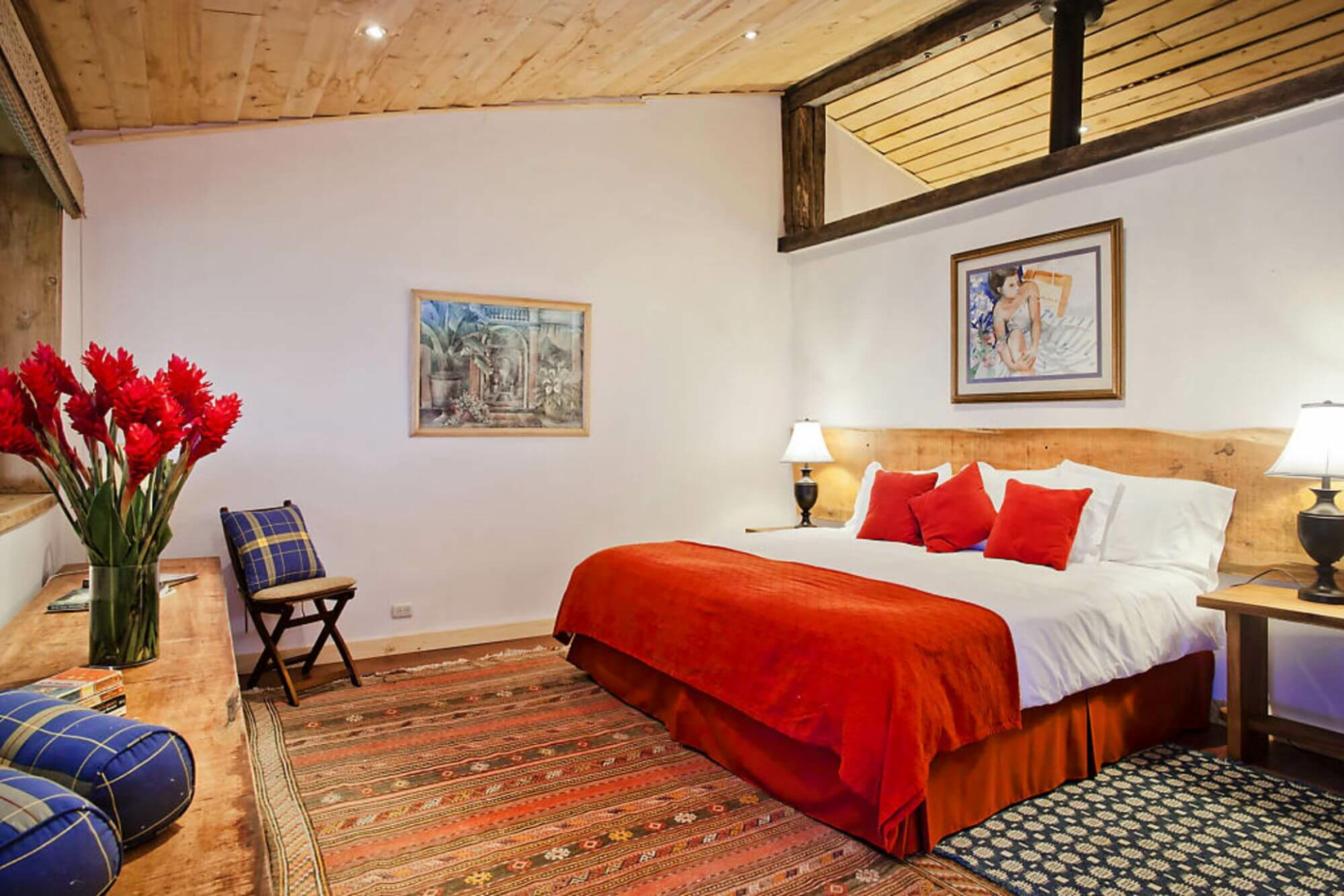 Genieße die wunderbare künstlerische Architektur in diesem erstaunlichen Ort mit weitem Blick auf San Jose und das zentrale Tal. Du wirst die unglaubliche Mischung aus farbenfrohen Mosaiken, Glasmalerei und modernem Dekor lieben. Alle Zimmer sind riesig und haben eine schöne gewölbte Holzde...
