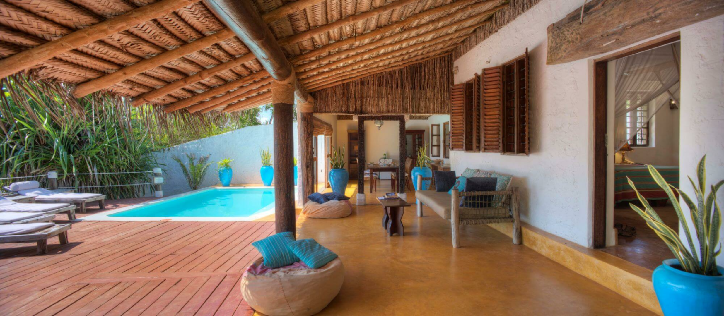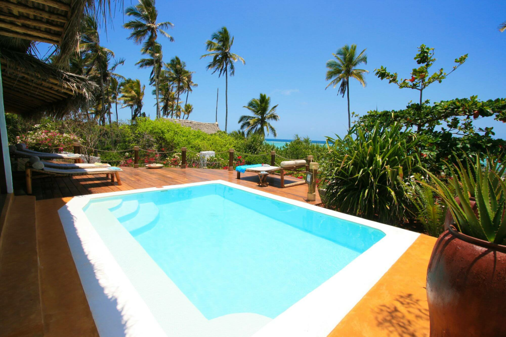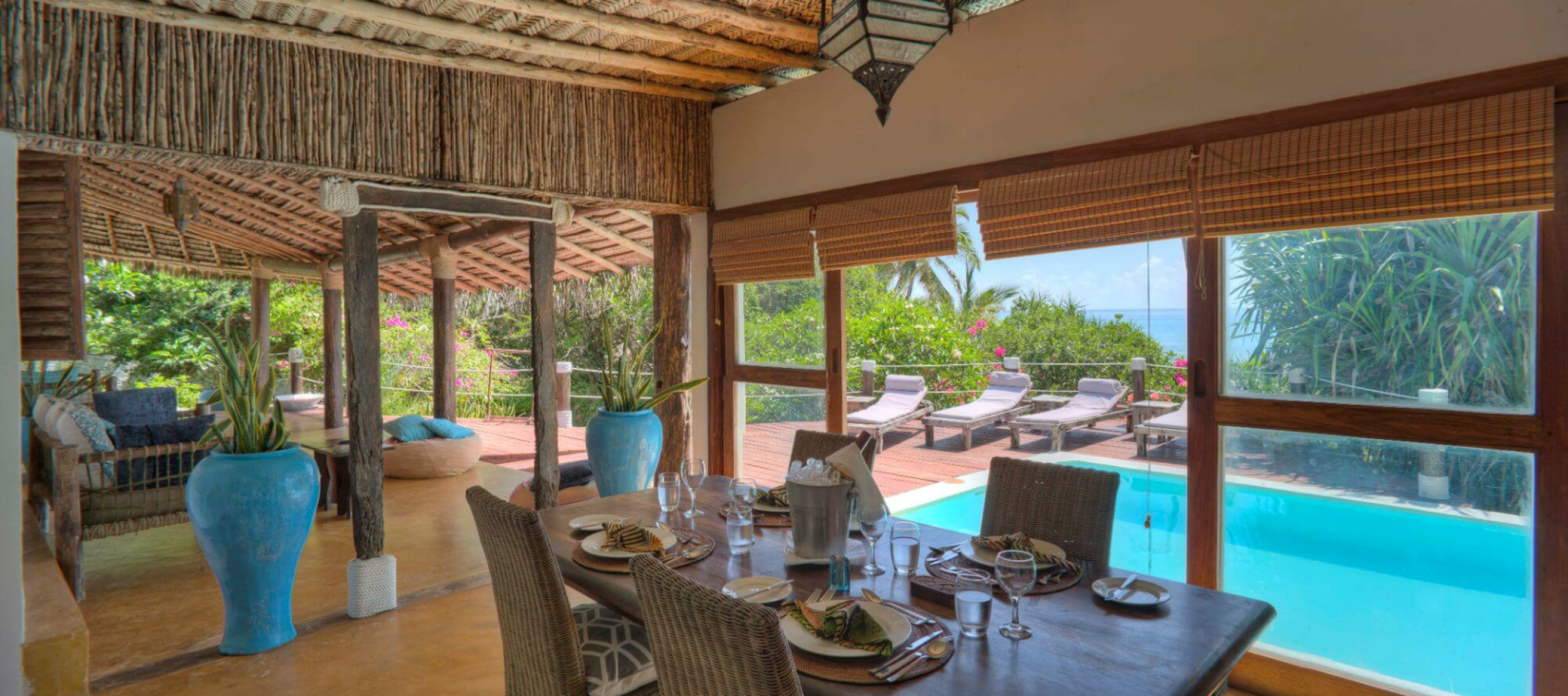 Diese hochwertige private Villa befindet sich in einer atemberaubenden Lage eines wunderschönen Strandabschnittes. Man sollte kein vornehmes Herrenhaus erwarten, sondern ein praktisches privates Strandhaus im afrikanischen Einrichtungsstil mit sehr viel Liebe zum Detail. Die Villa besteht als aus zweie Schlafzimmern in der unteren Etage (jedes mit Privatbad), einer sehr schönen Lounge mit Speiseterrasse, einen kleinen Swimmingpool mit Liegenstühlen und direktem Zugang zum Strand. Auf der oberen Etage findet man einen Dachboden mit zwei getrennten Betten. Die Villa liegt unittelbar südlich von der Matemwe Lodge und die Gäste können die Einrichtungen der Hauptlodge nutzen, darunter das Wassersportcenter und Tauchcenter direkt nebenan. Tauchausflüge werden von Tauchcenter der Nachbar Matemwe Lodge organisiert. Außerdem ist die Villa komplett gewartet mit Koch und privatem Butlerservice.