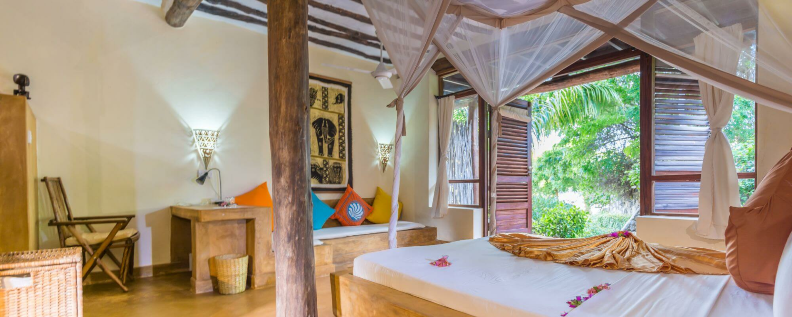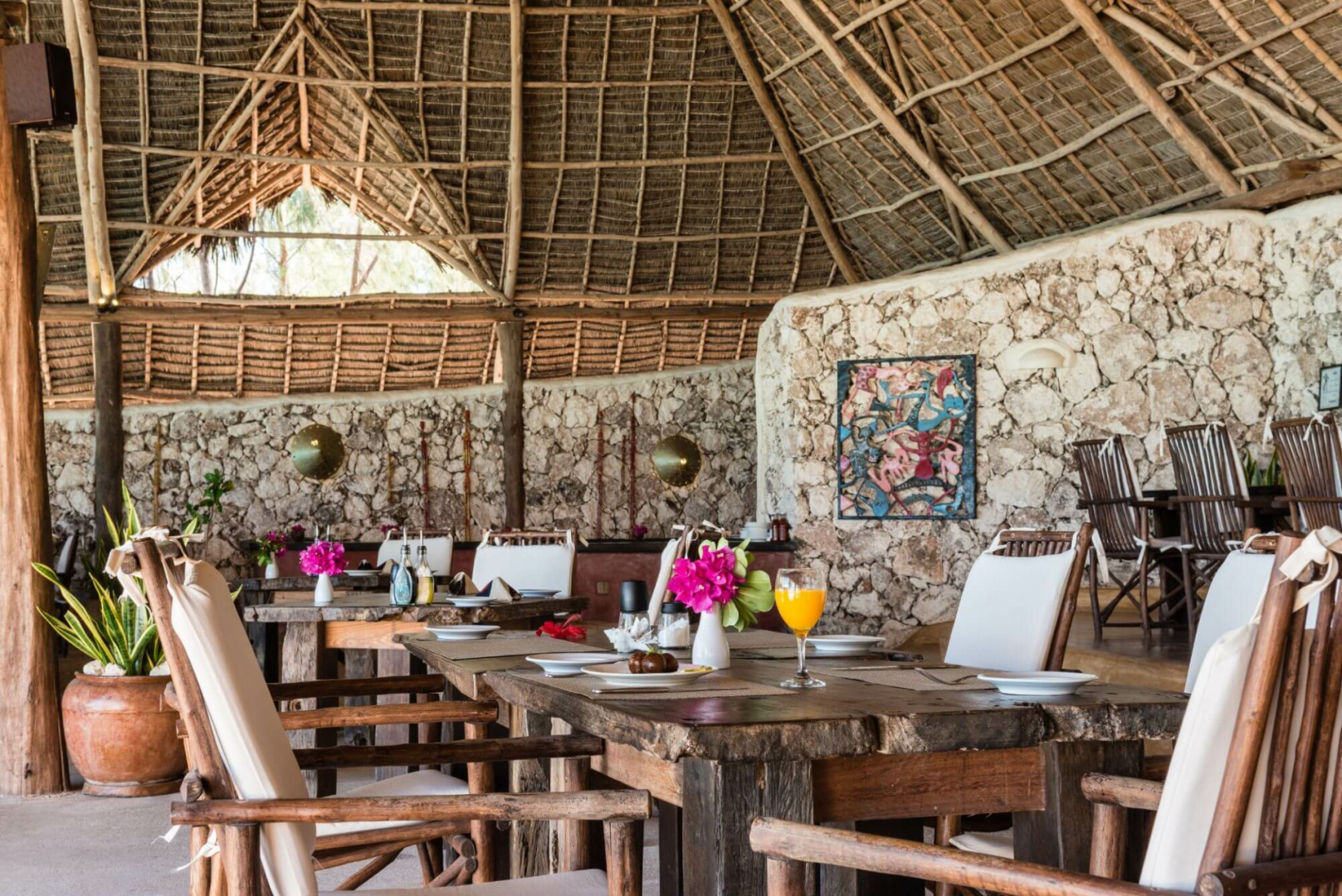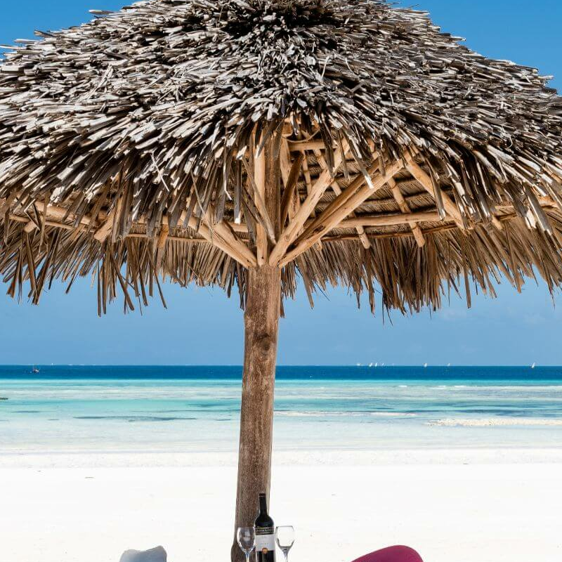 Die kleine Lodge blickt direkt auf das Mnemba Atoll, und eignet sich daher perfekt für die besten Tauchund Schnorchelausflüge auf der Insel. 10 Minuten zu Fuß erreicht man den noch komplett baufreien Muyuni Beach, einem perfekten weißen Sandstrand, wo man sich in Zeiten vor dem Tourismusboom auf Sansibar versetzt fühlt. Ungewöhnlich für Sansibar ist die Tatsache, das man fast ganztägig unabhängig von Flug und Ebbe im Meer schwimmen kann. Am besten nimmt man ein Picknick mit und verbringt man den ganzen Tag am Strand.