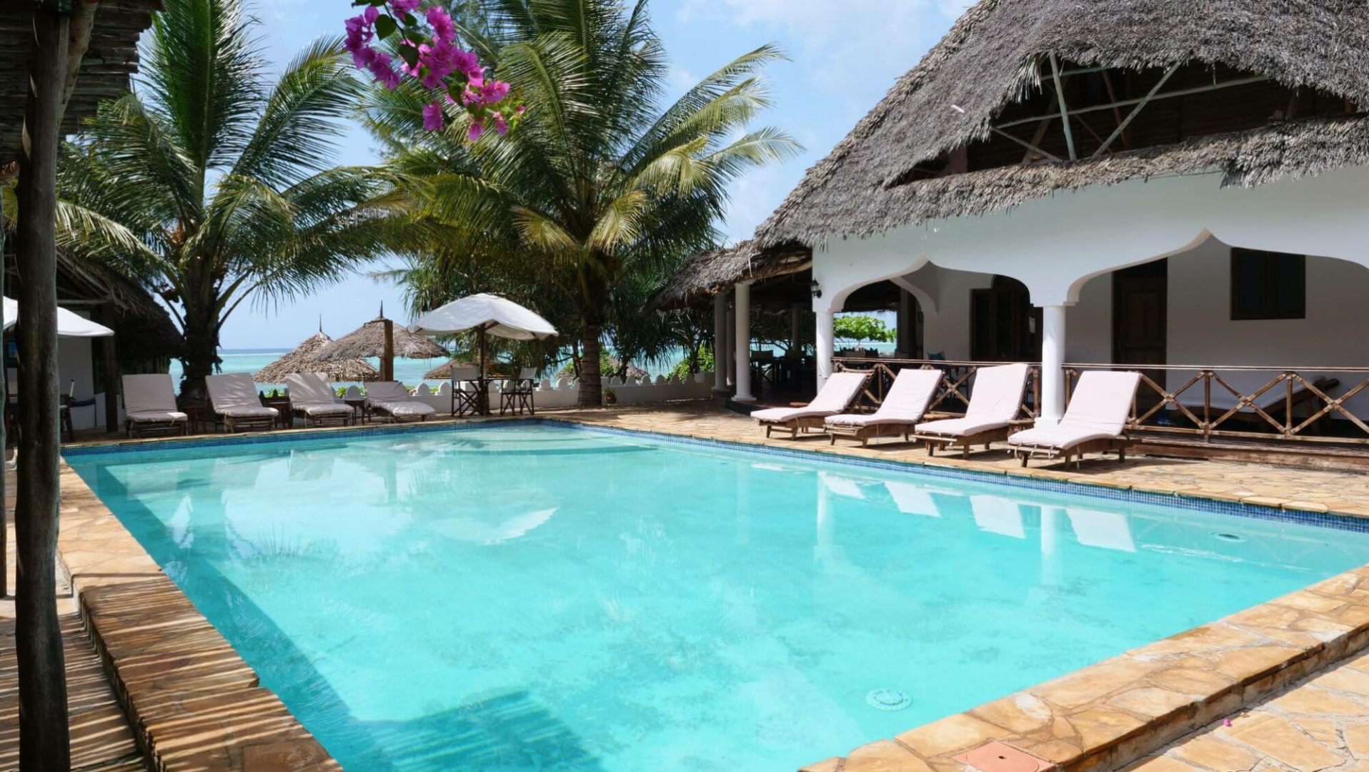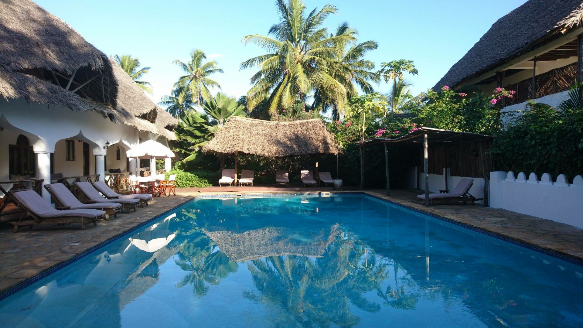 Zweckmäßiges kleines Hotel der Mittelklasse an einem schönen Abschnitt des Matemwe-Strandes gelegen, der schön mit Liegestühlen ausgestattet ist. Das Hotel hat einen kleinen Pool um einen Hof sowie 12 Zimmern, die in der Kategorien Garten, Meerblick, Standard und Budget unterteilt sind. Das Zanzibar Retreat Hotel ist eine kleine Adresse mit Boutique-Charakter, was durch seinen Zugang zu den besten Tauch- und Schnorchelnplätzen Sansibars und der ruhigen Lage außerhalb des Dorfes Matemwe besticht. Es ist vielleicht nicht unsere erste Wahl an dieser Küste (das Hotel konnte leicht renoviert werden.) Für bloße Tage Nichtstun ist in dieser Preisklasse nichts zu bemängeln.