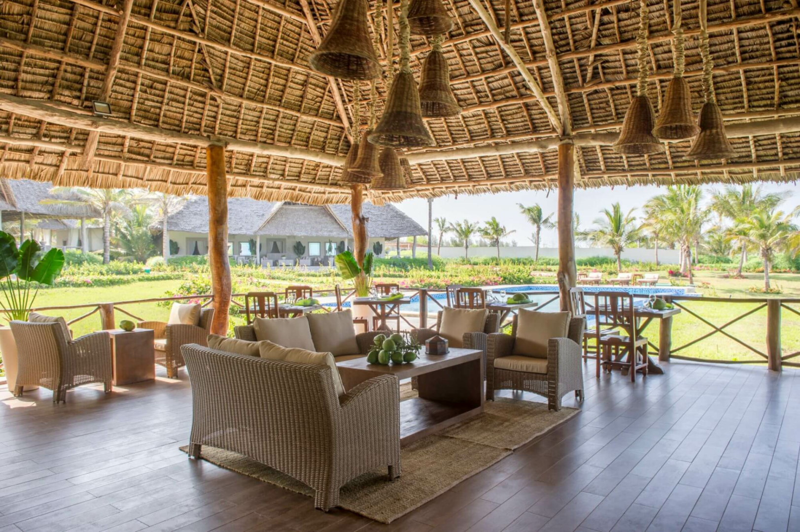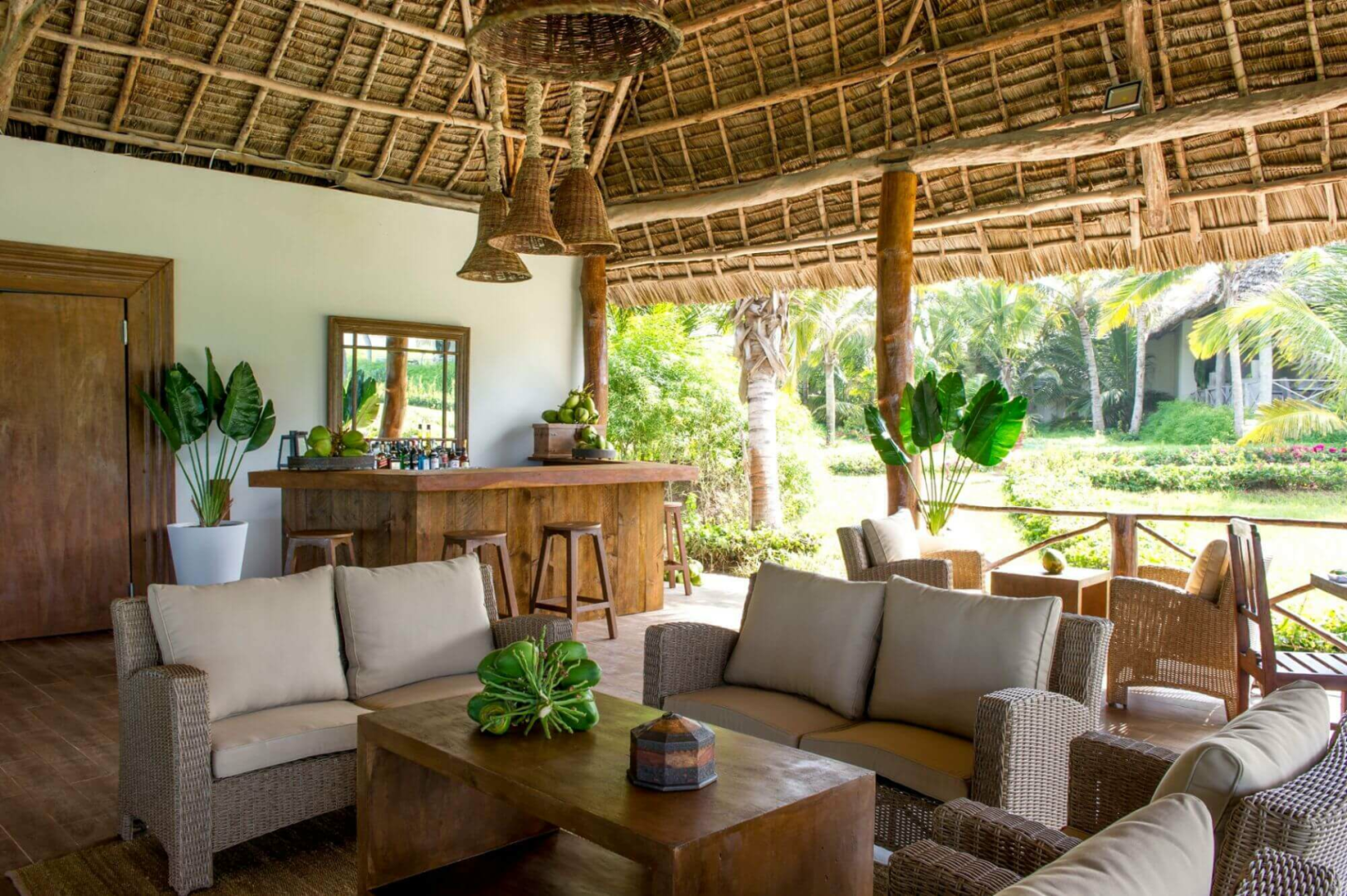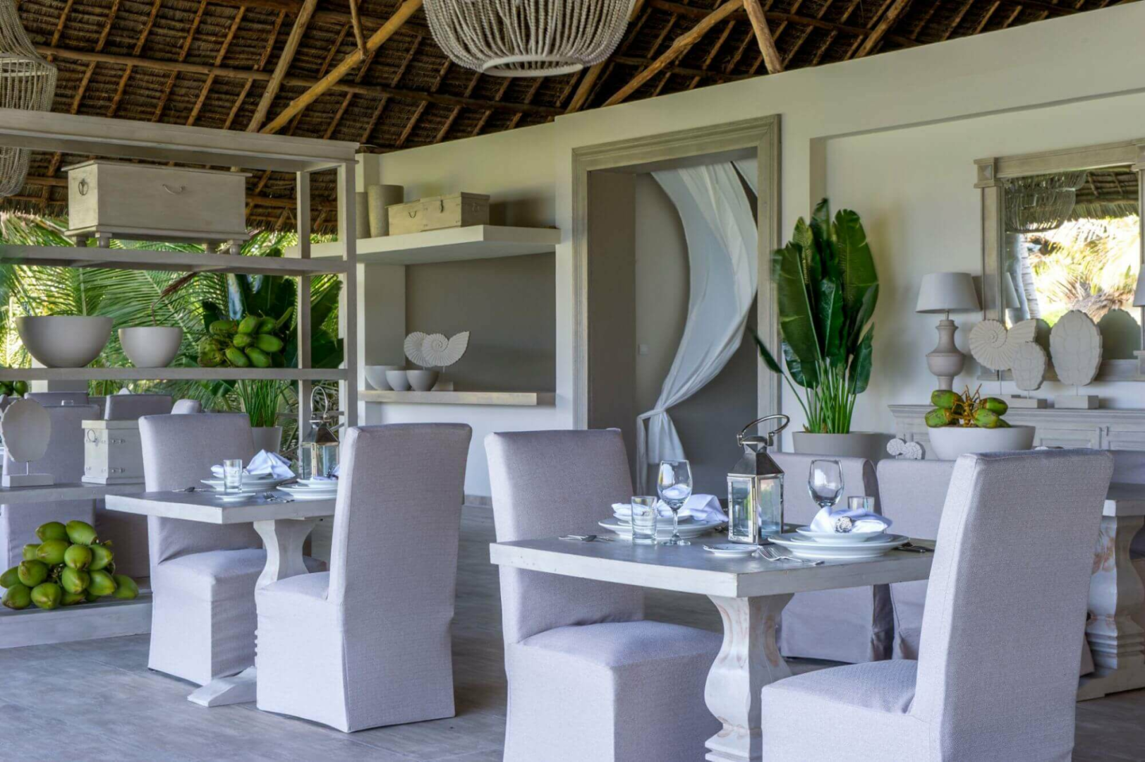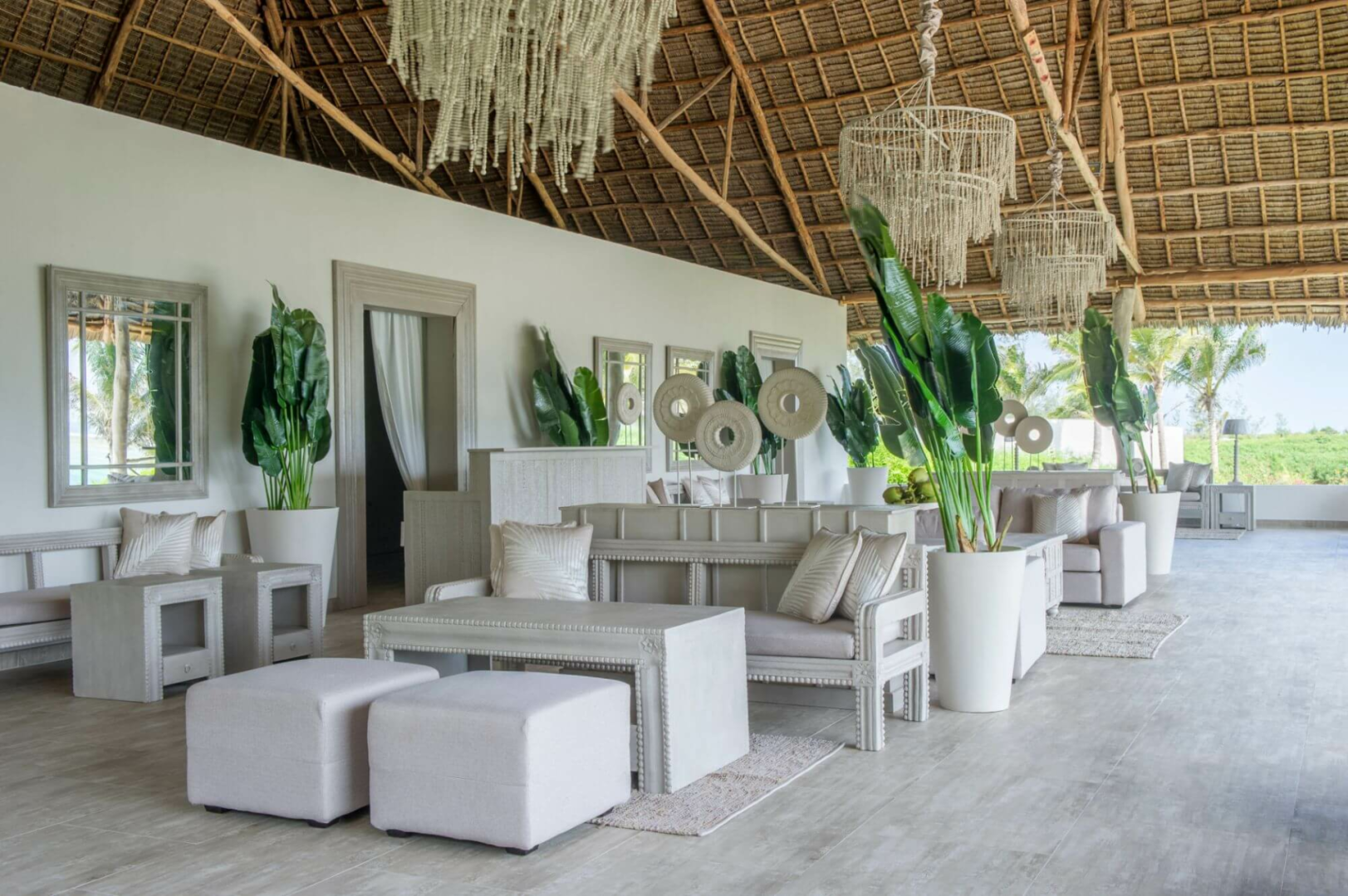 Wie auch The Breezes und Baraza liegt dieses kleine stilvolle Luxushotel bei Bwejuu unter dem Besitz Mutter und Tochter-Paares Nathalie und Paulina Raguz. Paulina hat das Baraza zum Großteil selbst entworfen. Herzstück des Hotels ist ein wunderschöner unter Reetdach stehender Bau, in dem sowohl die Bar als auch das Restaurant untergebracht sind, und eine spektakuläre Aussicht zum Meer anbietet. Die Inneneinrichtung der öffentlichen Bereiche ist durchaus elegant und geschmackvoll, ohne übermäßig opulent zu wirken. Wir mögen den zeitgenössigen Design mit klaren Linien und weiß lackierten Massivholzmöbeln. Unterhalb der Hauptlodge, eingebettet in den Garten, befindet sich der große Pool oberhalb des Strandes mit dortiger Beach Bar.