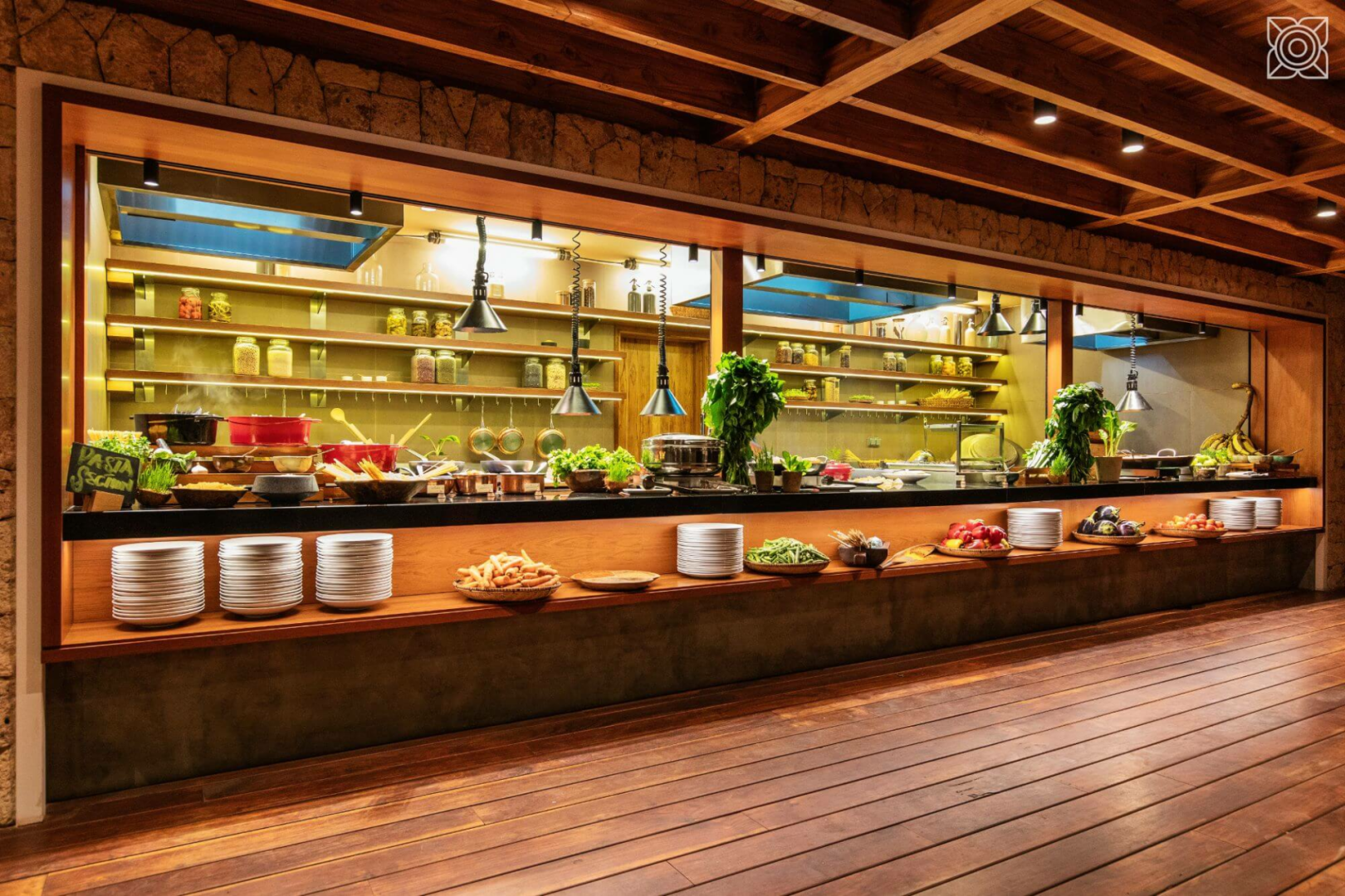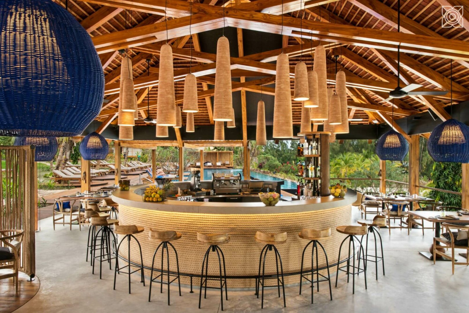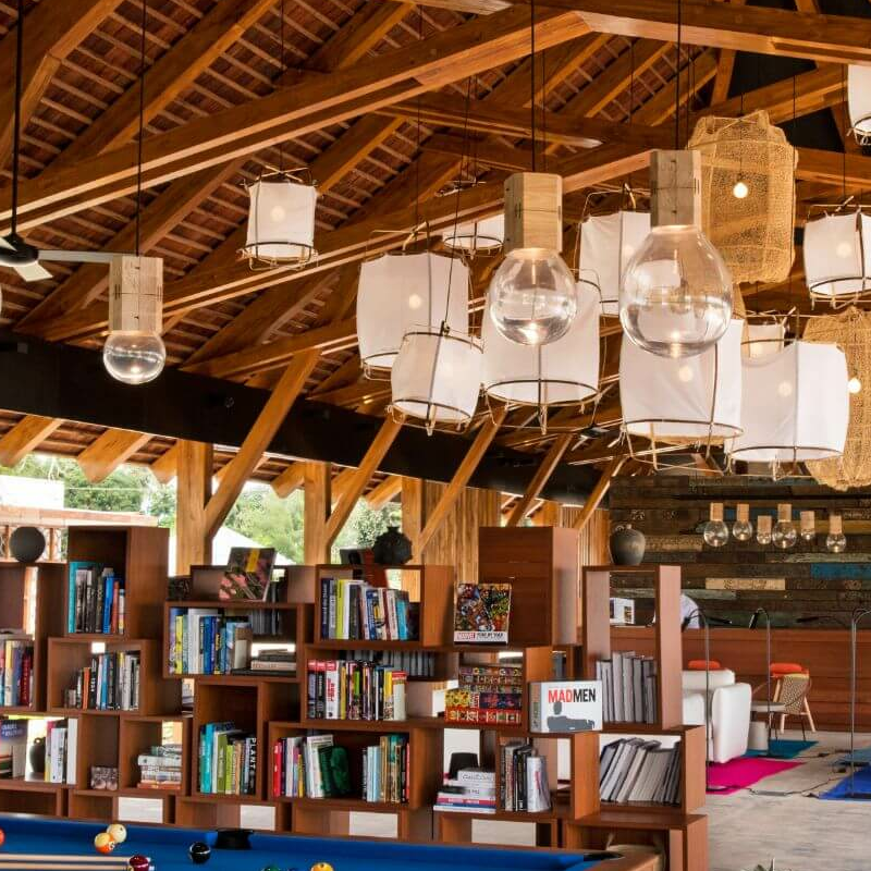 Das Resort ist um eine Reihe Bars und Restaurants inmitten einer gepflegten gartenähnlichen Anlage angeordnet. Der luxuriöse, moderne Design ist ein Traum: Von den offenen Loungebereich mit Bar, den handgefertigten origellen Buchregalen, mit von der Decke hängenden Sitzkorben aus Rattan und dem Billiardtisch hin über die wunderschön mit Hunderten Rattan- und Papierlampions dekorierten Restaurants, den Terrassen mit bunten Kissen und dem fantastischen 32 Meter langen Infinity-Pool. Nicht umsonst wurde das Hotel wurde von den preisgekrönten Architekten Jestico und Whiles entworfen und hat mehrere Preise aufgrund ihrer innovativen umweltfreundlichen Architektur gewonnen.