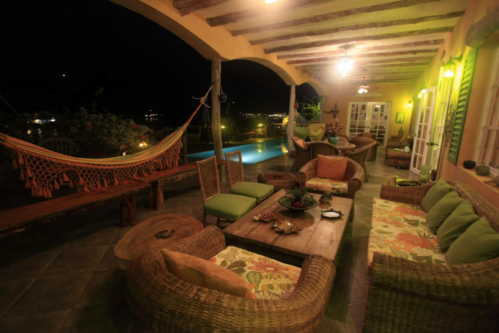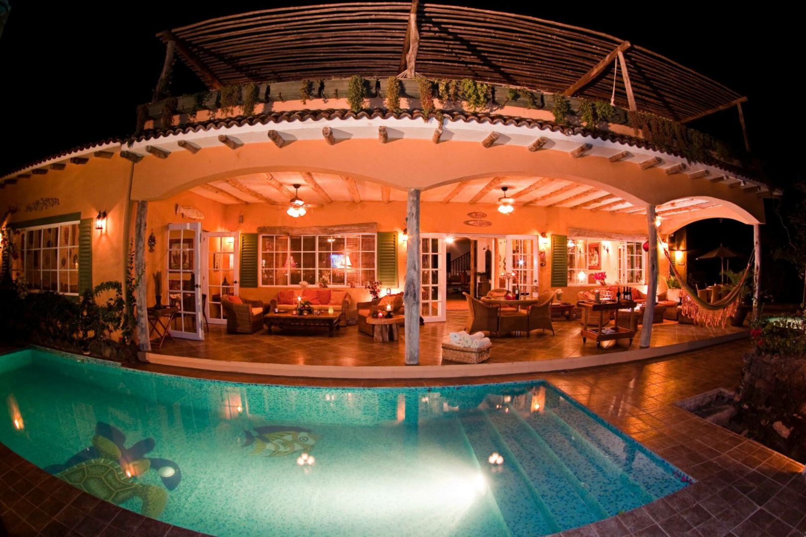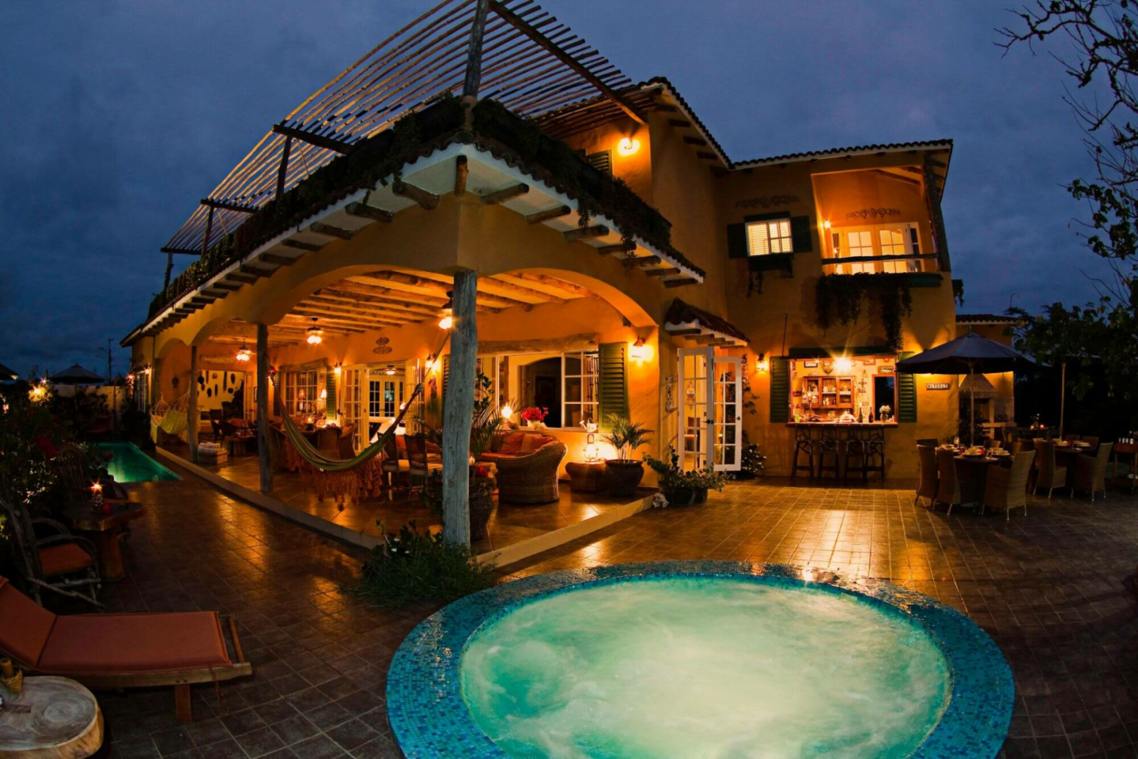 Das ockerfarben gestrichene, charmante zweistöckige Haus liegt im ruhigen Viertel von Punta Estrada und bietet fünf sehr geschmackvoll eingerichtete Zimmer, sieben Bäder, offen gehaltene, gemeinsame Räumen, einen Patio und eine geräumige Terrasse mit Pool, Jacuzzi und bequemen Sitzmöglichkeiten. Die Zimmer werden täglich gereinigt.