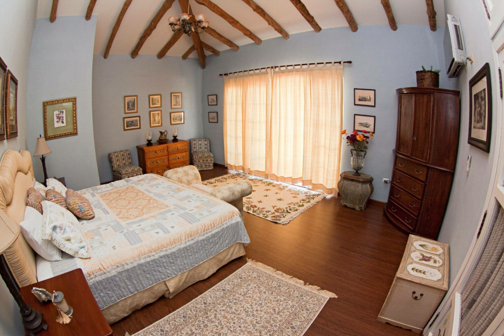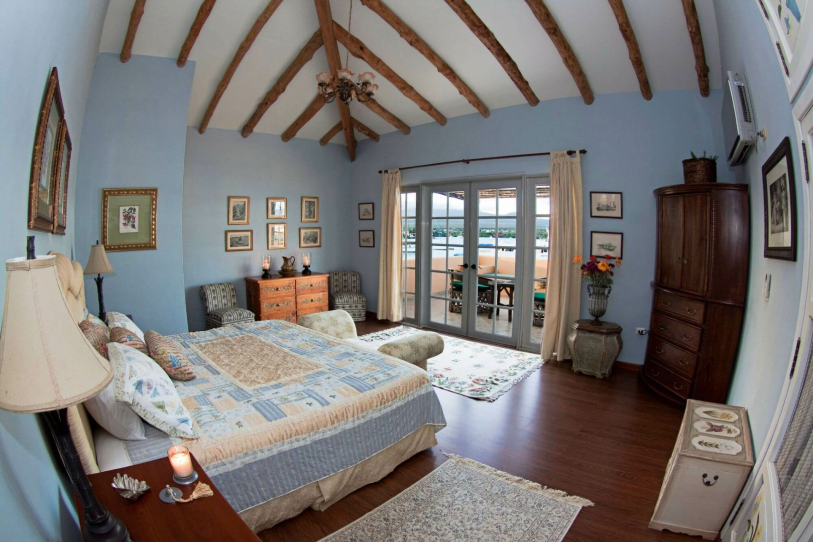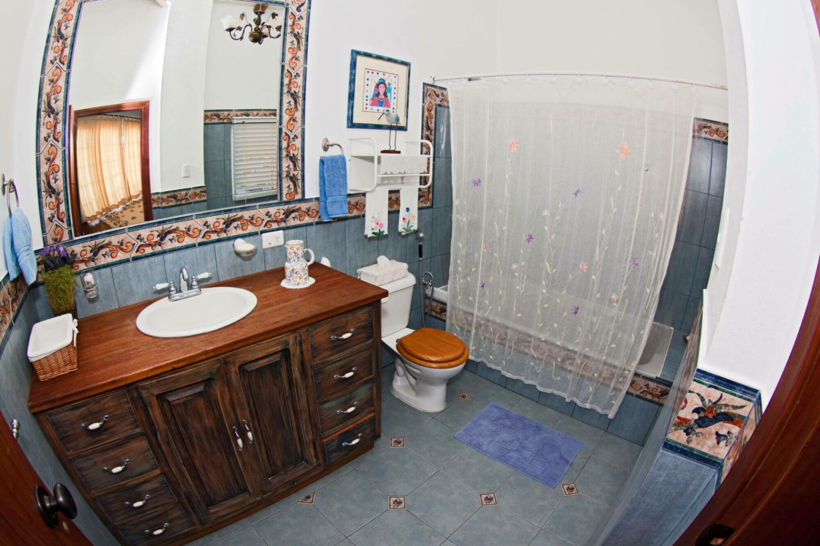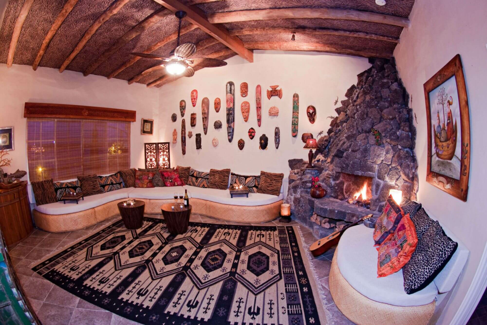 Das ockerfarben gestrichene, charmante zweistöckige Haus liegt im ruhigen Viertel von Punta Estrada und bietet fünf sehr geschmackvoll eingerichtete Zimmer, sieben Bäder, offen gehaltene, gemeinsame Räumen, einen Patio und eine geräumige Terrasse mit Pool, Jacuzzi und bequemen Sitzmöglichkeiten. Die Zimmer werden täglich gereinigt.