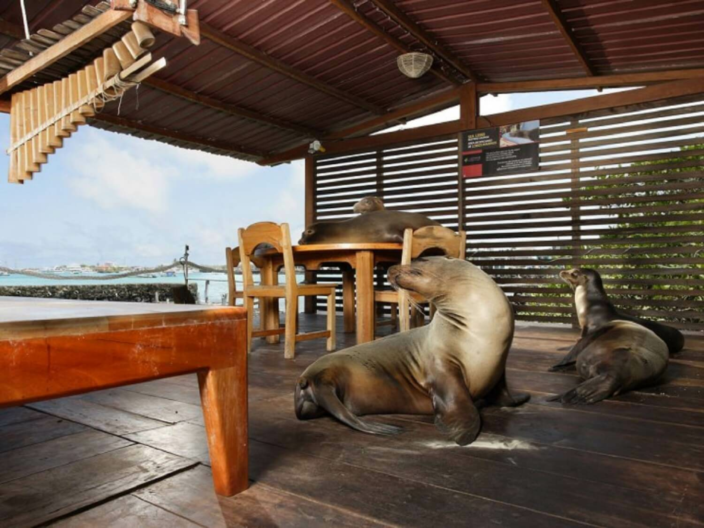 Galapagos Habitat ist ein optisch ansprechend gestaltetes Hotel nah des Charles-Darwin-Station mit niedrigen Gebäuden aus rot gestrichenem Stein. Die Liegen und Stühle auf der Terrasse werden häufig von Iguanas und Seelöwen belegt und sind deswegen nicht nutzbar.