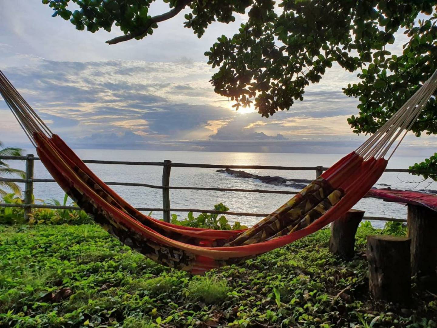 Die Gomela Ecolodge ist eine kleine, einfache Lodge mit einzigartiger Atmosphäre direkt am schönsten Strand von Sao Tome, dem Praia Piscina, an der Südspitze der Insel. Die Unterbringung erfolgt in gut ausgestatteten, rustikalen Bungalows mit begrenztem Stromzugang (die durch Solarpaneele erzeugt wird) und ohne Warmwasser (das Ihr bei diesen tropischen Temperaturen nicht wirklich vermissen werdet). Das Essen ist köstlich und der Service der Besitzer ist hilfsbereit und freundlich. Was uns am meisten gefällt, ist der schöne Blick auf den Strand von der Terrasse aus, der spektakulär ist.