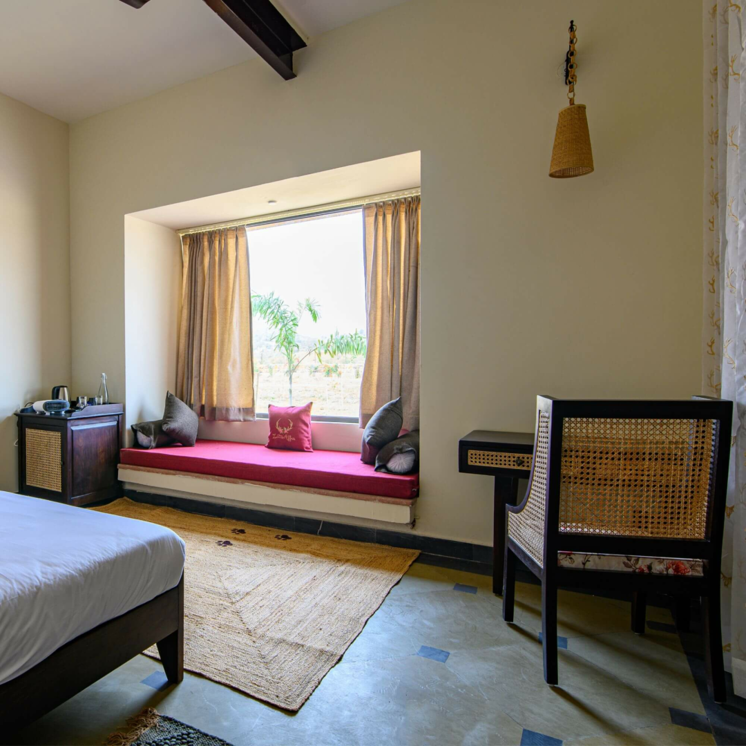 Vanaashrya ist eine schöne neue Lodge am Fuße des Aravali-Gebirges, nur 10 Minuten vom Sariska-Tigerreservat entfernt.