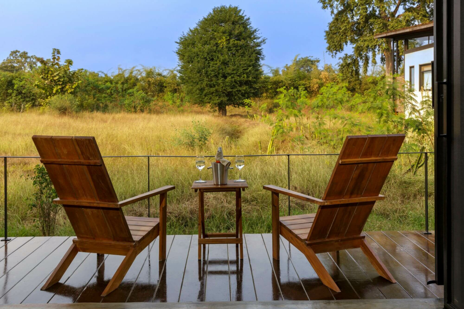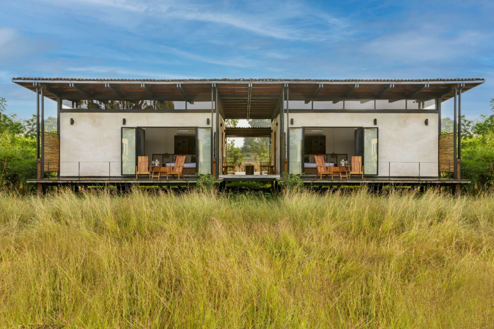 Neue Lodge der Pugdundee-Hotelgruppe in einer malerischen Lage nah des Denwa-Flusses. Die Lodge bietet eine nette Mischung aus circa acht Villen mit großen Betten und wunderschöne Aussichten auf den Fluss durch riesige Fenster mit Holzrahmen. Am meisten überzeugen allerdings die zwei luxuriös au...