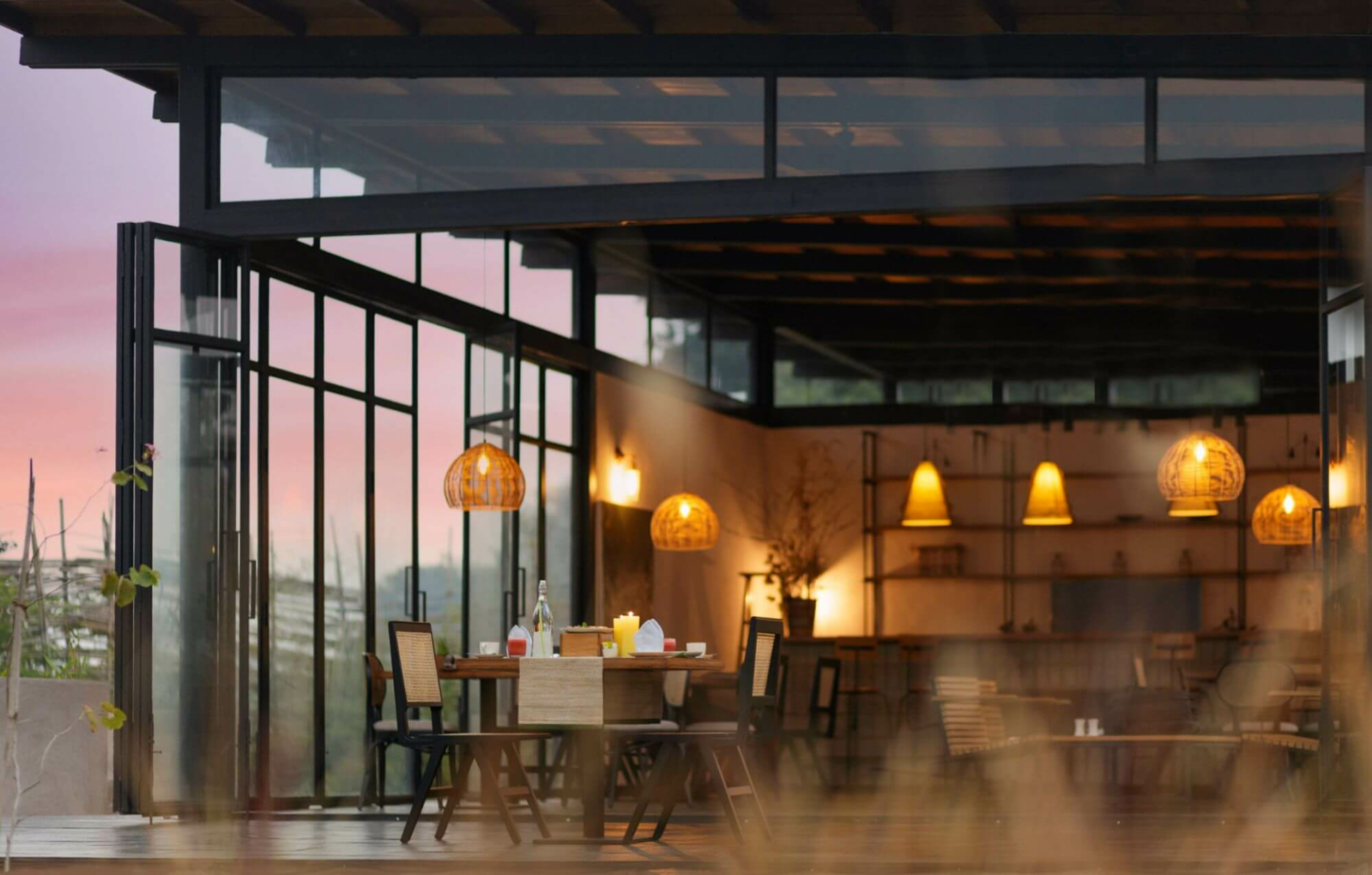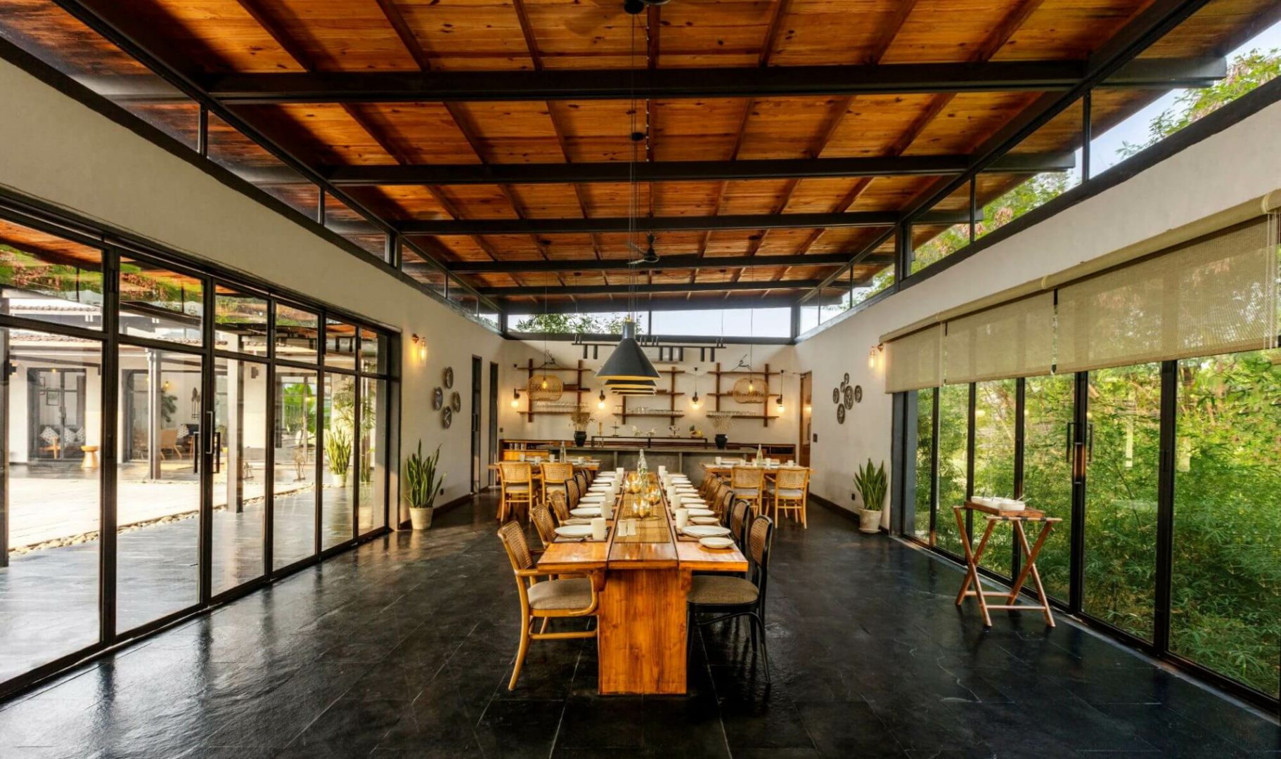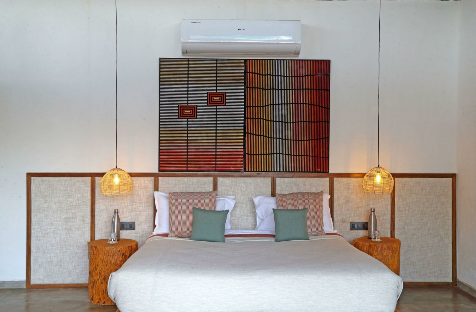 Die 14 Cottages sind gut über das Gelände verteilt und über ein Netz von Holzplattformen zu erreichen. Die Cottages sind sehr geräumig und modern im Design, mit grauen und schwarzen Farben gemischt. Es gibt ein riesiges Doppelbett und eine Sitzecke mit Blick auf einen Balkon, der sich zur privaten Terrasse (ebenfalls mit Sitzgelegenheit) hin öffnet. Es gibt einen Schreibtisch, eine Kaffee- und Teestation und ein separates, sehr geräumiges Badezimmer mit Innen- und Außendusche, Badewanne und Toilette.