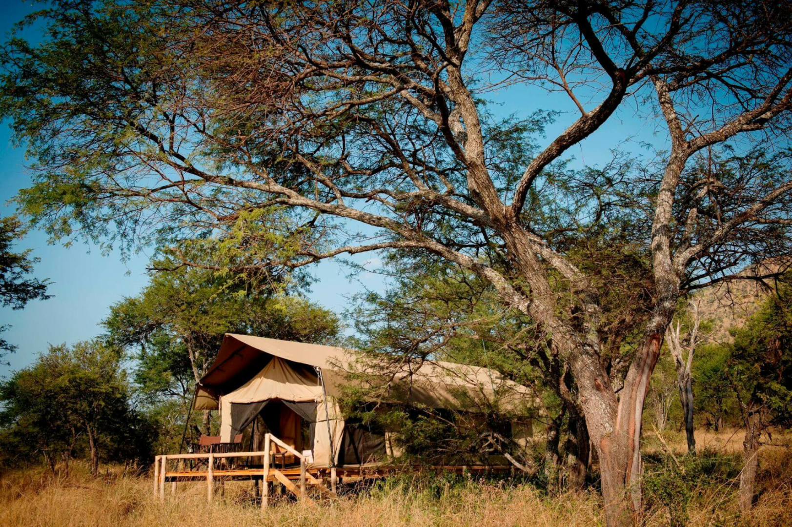 Sehr luxuriöses Tented Camp in den Moru Kopjes, angenehm fernab des touristischen Trubels von Seronera gelegen. Die acht Zelte sind sehr attraktiv im Kolonialstil eingerichtet, das gemeinsame Speisezelt ist sehr ansprechend gestaltet. Service und Verpflegung sind erstklassig, wie man es bei einem Lemala-Camp erwarten würde.