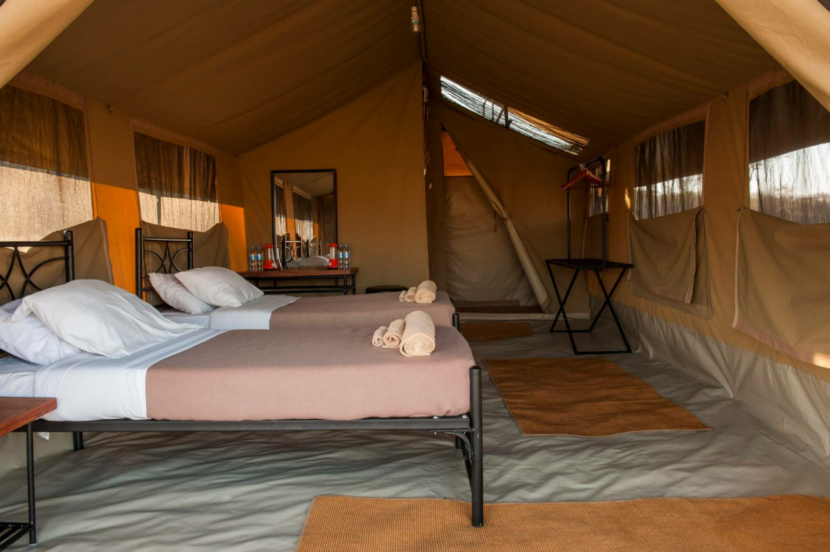 In jedem Camp gibt es 12 Zelte, welche nicht wirklich gemütlich und komfortabel eingerichtet sind. Im Gegensatz dazu sind die Gemeinschaftsbereiche mit Restaurant und Lodge durchaus ansprechend. Das Essen ist gut und wird als Buffet angeboten, am Morgen kann man sich hier sein eigenes Lunchpaket am Frühstücksbuffet zusammenstellen.