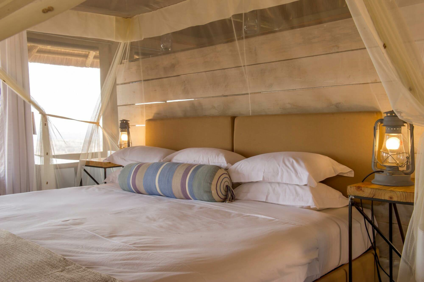 Die Gäste wohnen in 25 Luxuszelten unter Reetdach, die mit Außendusche und Balkon ausgestattet sind. Die Zelte sind zudem sehr großzügig angelegt und können bis zu 5 Personen unterbringen, was Familien sehr zusagt.