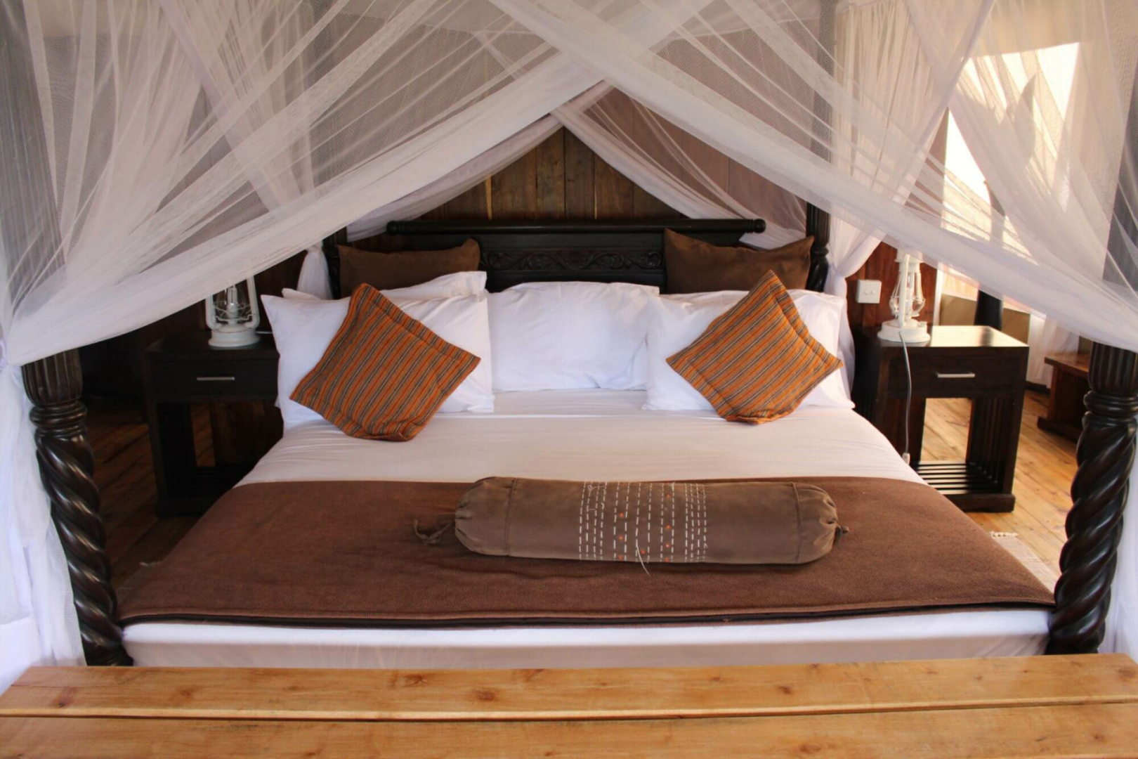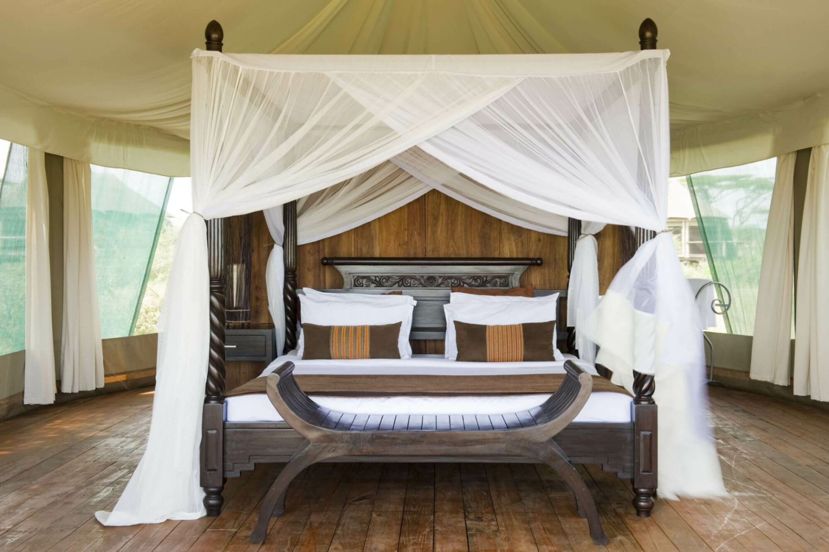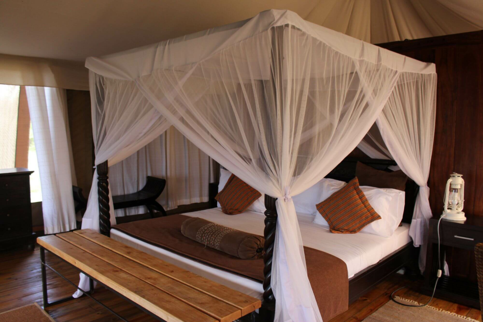Mit dreißig Luxus-Zelten und einem Spektrum an herkömmlichen Annehmlichkeiten wie Telefon und freistehender Badewanne eignet sich diese permanente Lodge der gehobenen Mittelklasse insbesondere für jene, denen eine Unterkunft in einem richtigen Tented Camp zu abenteuerlich ist.